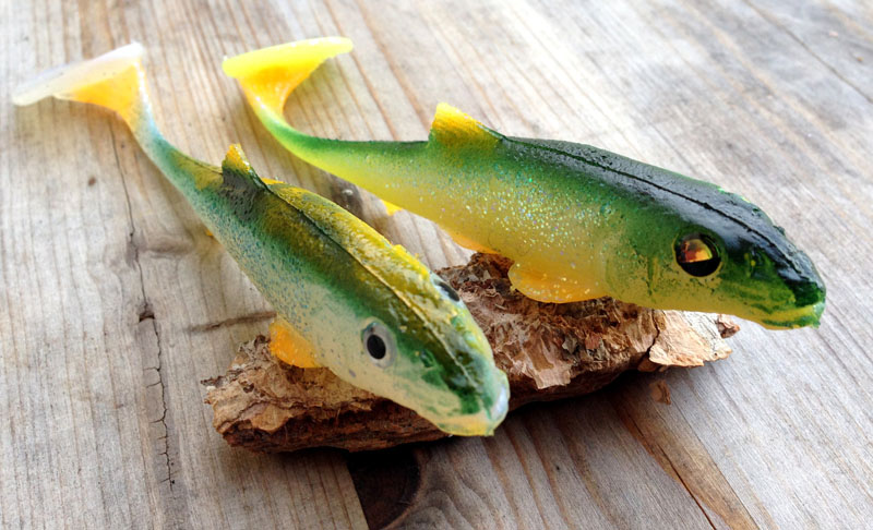 Janus Opublikowano 13 Kwietnia 2016 Autor Zgłoś Udostępnij Opublikowano 13 Kwietnia 2016 Na zdjęciu są najnowsze ukleje 10 i 11 cm z dwoma rodzajami ogonków. Zrobione na szybko do przetestowania na poruszanie się. A tu nowa idea. Prototyp gumy o właściwościach pływających, takich jak wobler. Idea nie oparta na pęcherzu powietrza.Pomyslane do łowienia na powierzchni (płaskie, zarosniete akweny) i z ołowiem do penetrowania dna. Odległość od cieżarka można ustawiać dowolnie. To może się okazać hitem jesli chodzi o okonia, suma i sandacza. Niedługo zacznę fazę testowania. 11 Cytuj Odnośnik do komentarza Udostępnij na innych stronach Więcej opcji udostępniania...