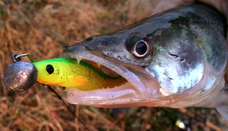 Dzisiaj testowałem dwie formy główek jigowych. Przy drugim rzucie uderzyła 70 na zdjęciu poniżej.