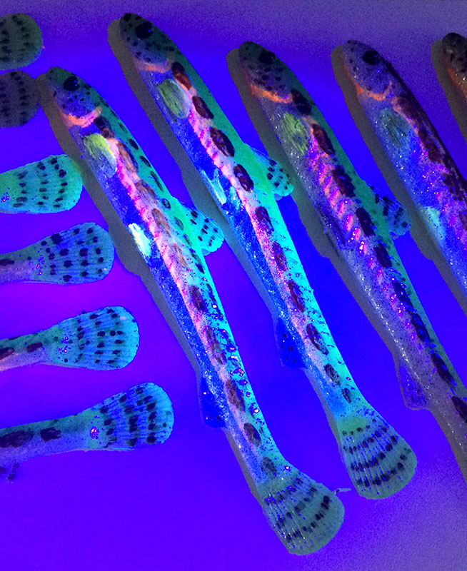 Czasami jak ryba a czasami jak piskorz. Narazie zbroiłem na jig. To jest całkiem nowe. Ja zazwyczaj używam UV aktywnych farb. Mam jeszcze zamiar zrobić w tym modelu z kopytem (może z czymś innym) i pod hak ofsetowy.