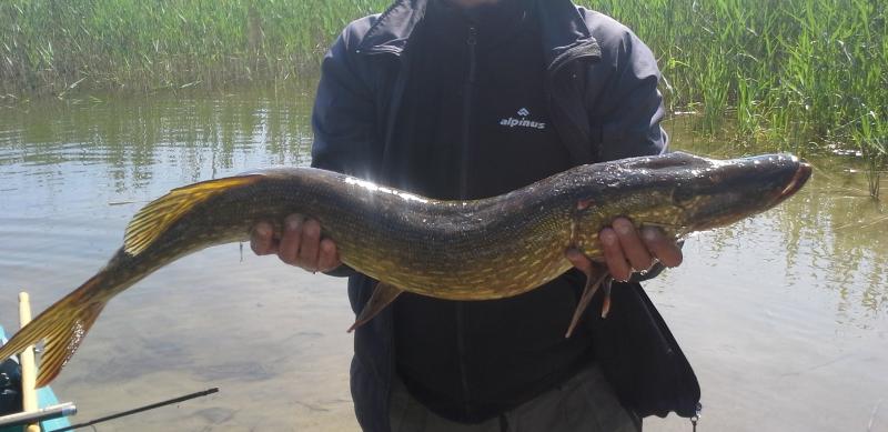 j-23 Opublikowano 18 Kwietnia 2016 Zgłoś Udostępnij Opublikowano 18 Kwietnia 2016 (edytowane) Z zeszłego roku 92 cm , rzecz jasna na Janusza wyrób .Ten dzień zapamiętam do końca życia a dokładnie święto Bożego Ciała w 2015 r , jak na razie jest to mój rekord ale mam nadzieję go poprawić i przekroczyć magiczną barierę metra .Pogoda była słoneczna ale wiało nie gorzej , trudno nam było się utrzymać na kotwicy a pływałem z kolega pontonem kolibri 270 więc o komforcie łowienia można zapomnieć .Szczupak wziął z płytkiej wody ok 1,5 metra przy grążelach gdzie wcześniej złowiłem malucha 55 cm . Właściwie były to rzuty ostatniej szansy bo został złowiony w drodze powrotnej .Walka trwała około paru minut , bo zrobił mi parę odjazdów ale jak się przewinął przy powierzchni to oniemiałem zacząłem go szacować na metr . Serducho wałiło mi podczas walki tak ze sam słyszałem jego bicie Podebrany chwytem za kark przez mojego przyjaciela .Kij z pracowni Kawalec 2,4 m cw 7-21 g plecionka Varivas 0,8 PEkołowrotek Ryobi 2000 przynęta stint-M02CHBP - 10 cm Dzięki Janusz , mam zamiar w tym roku wycisnąć trochę więcej z Twoich gum byle tylko zdrowie było . Edytowane 18 Kwietnia 2016 przez j-23 1 Cytuj Odnośnik do komentarza Udostępnij na innych stronach Więcej opcji udostępniania...