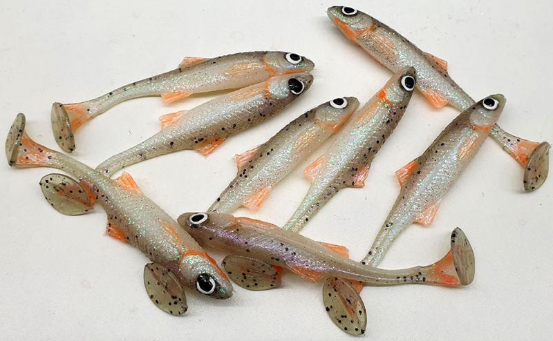 Poszalałem dzisiaj w przerwach na realizację zamówień i zrobiłem rybki z trzema różnymi brokatami. Oczywiście wszystkie trzy nakładane na każdą rybkę. Rybki są bardzo jasne, ale tylko w cieniu aparat fotograficzny przekazuje efekty. Niestety nie wszystkie.