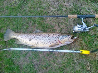 adi203 Opublikowano 23 Kwietnia 2011 Zgłoś Udostępnij Opublikowano 23 Kwietnia 2011 Pogoda dzisiaj była pstrągowa wybitnie, to moja życióweczka 57 cm, od rana do 15 uganiałem się za pstrągami bez rezulttu, popołudniu przestawiłem się na klenie i takie rybsko uczepiło się na kleniowego wobka, zestaw batson 2,9m 2-10gr shimano super 2000 i żyłka 0,20 (całe szczeście nie zabrałem szpulki z 0,16) ryba dała mi popalić, wychodziła 3 razy do wobka, myślałem że duży kleń, po zacięciu wszystko było jasne, świeca i expres w górę rzeki, adrenalina na maksa, 3 razy tam i z powrotem, parę młynów, na delikatnym zestawie takie hole to super zabawa... polecam Cytuj Odnośnik do komentarza Udostępnij na innych stronach Więcej opcji udostępniania...