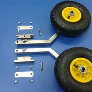 Dużo lepszym rozwiązaniem jest jak kółka wchodzą pod ponton.Zakładasz silnik,aku,zbiornik paliwa i robi się przeciwwaga. Ponton ok 90 kg + silnik slipujesz jedną ręką.