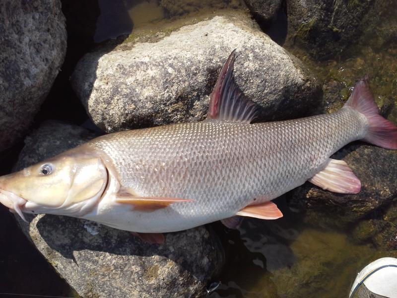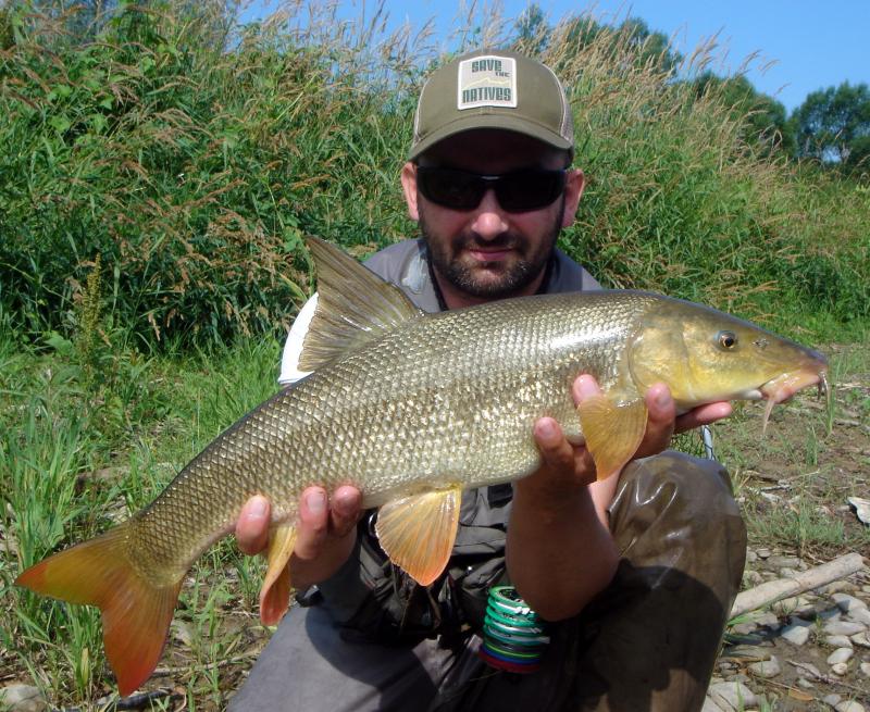 Dziś trafiłem w miejsce i czas :) . Na kiju miałem 6 brzan , a na brzegu wylądowało 4. Niestety zdjęcie mam tylko jedno , 70 cm szczęścia. Podczas sesji z pierwszą brzaną , telefon wylądował wodzie :(  , wyłowiłem go po jakiś 30 sekundach szukania w kamieniach i o robieniu zdjęć mogłem zapomnieć .Biorąc pod uwagę ,że w zeszłym roku udało się złowić pierwszą brzanę w życiu , to po dzisiejszym wyniku czuję się jak milion dolców :D .