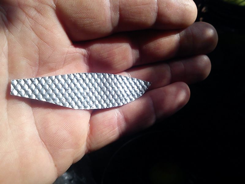 A tu takie nieśmiałe próby tłoczenia w folii aluminiowej imitacji łuski .