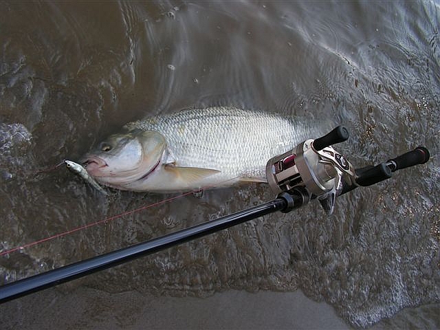 Tomy Opublikowano 9 Sierpnia 2010 Zgłoś Udostępnij Opublikowano 9 Sierpnia 2010 Piękny, piękny. Tomku a jaka to wędeczka na zdjęciu. Coś mi to przypomina ale zupełnie nie mogę złożyć w głowie co. Branzino? PozdrawiamRemekTak jak napisał Twister jest to wędka o Daniela X-Rods moja delikatniejsza wersja na Blu Rapidzie 2,70m 10-35g sparowana z Ryogą 1016HL.Morethanem nie zaryzykowałbym rzutem w taką kipiel jak dzisiaj bo nie lubię długich holi ze względu na kondycję ryby.Bolek nie był tytanem na oko z 7dych może pod może + ale dziabnął w bardzo ostrym prądzie i po braniu musiałem sobie pomóc drugą ręką trzymając za blank bo napór wody robił swoje.Jutro jadę na inną miejscówkę na wodzie powodziowej i biorę ze sobą cięższą wersję od Daniela BR do 50g z Ryogą 2020HL i plećką 20LB bez żadnych przyponów FC,bez żadnych łączników itp.Robiłem fotkę wypuszczenia ryby ale tak wyrwał i się nie udało. Cytuj Odnośnik do komentarza Udostępnij na innych stronach Więcej opcji udostępniania...