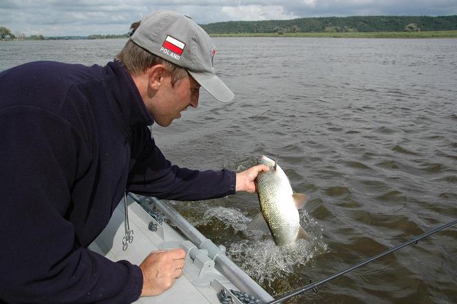 Nieprawda że wielkość boleni rośnie wraz z rzeką. Duże bolenie można jak widać złowić wszędzie w Wiśle, w górze jak i w dole. To czy je będziemy łowić jak zwykle zależy od wielu czynników. Moim zdaniem im większa rzeka tym trudniej te duże znaleźć i tym samym złowić. Odcinki płytkie, wąskie jakie są w górze rzeki często to nam ułatwiają, choć z drugiej strony są bardziej narażone na przełowienie. Duża szeroka Wisła jest na to mniej narażona, ale niestety duże ryby mogą stać w miejscach zupełnie niedostępnych dla spinningu. U nas bolki 65-70 to też spore ryby, ale każdy boleniarz ma ich trochę na koncie i w pewnym momencie oczekuje czegoś więcej i szuka okazu.