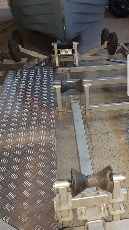 Pomagają tylko pierwszy komplet rolek kilowych (tych od wody) msi być jak najbliżej osi z kołami żeby łódka mogła wpłynąć dziobem jak najdalej. Wtedy kółka boczne mają racje bytu.