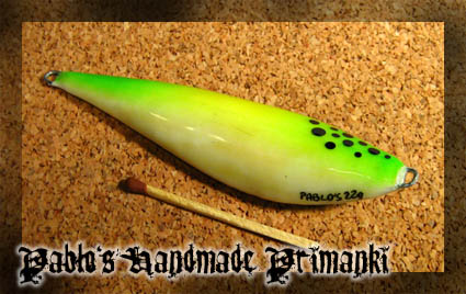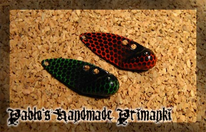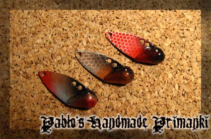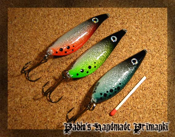 pawlik832 Opublikowano 5 Kwietnia 2011 Autor Zgłoś Udostępnij Opublikowano 5 Kwietnia 2011 I jeszcze spoony na morze 80mm 22-24g: Za kilka dni pokończę jeszcze stadko spoonów 80mm w różnej kolorystyce i ok trzydziestu mniejszych 65mm ok 18g. Blachowoblerki te są mega lotne, ladnie pracują i łowią Przedewszystkim do zwijania. W skandynawii bardzo popularna przynęta na morze. Cytuj Odnośnik do komentarza Udostępnij na innych stronach Więcej opcji udostępniania...