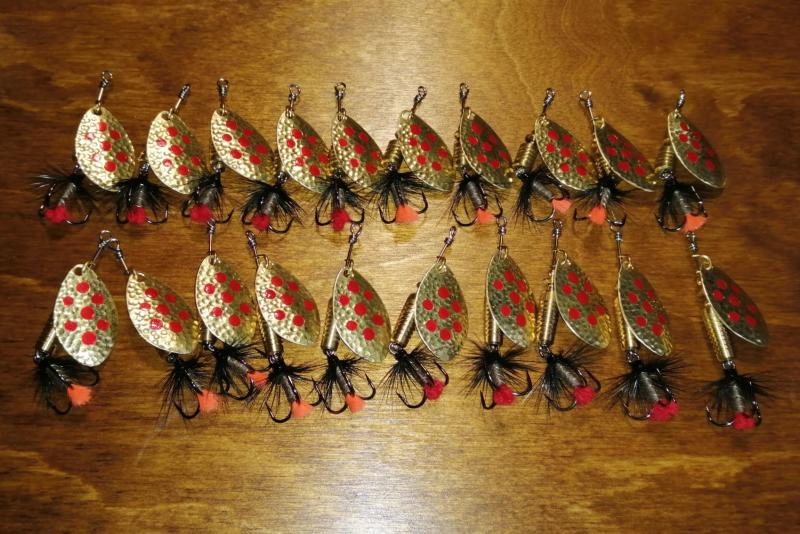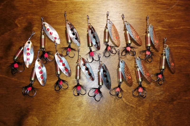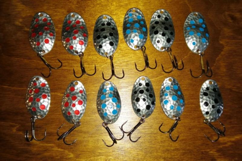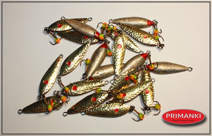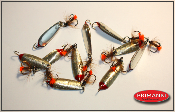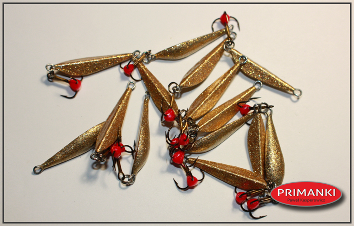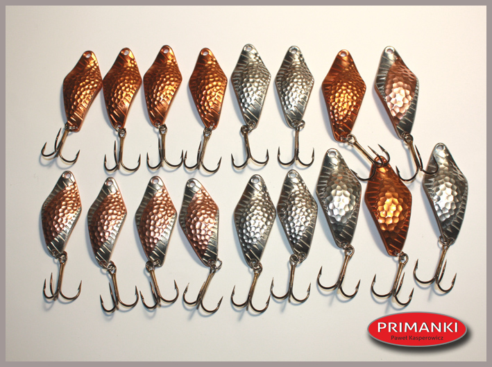 pawlik832 Opublikowano 16 Lipca 2019 Autor Zgłoś Udostępnij Opublikowano 16 Lipca 2019 Trociowe jajeczka w letniej, lżejszej wersji 9g i 11g. Wykonane z blachy 1,5mm (zimowe i na dużą letnią wode z blachy 2mm) idealne na niską wodę i górne odcinki rzek trociowych pomorza. Bardzo dobrze sprawdzały się na Wieprzy i górnych odcinach Parsęty powyżej od Rościna. Chociaż na niskiej wodzie 11g bardzo dobrze łowiło mi się również na mostach i niżej. Awers srebrny w kropki, rewers miedziany. 5 Cytuj Odnośnik do komentarza Udostępnij na innych stronach Więcej opcji udostępniania...