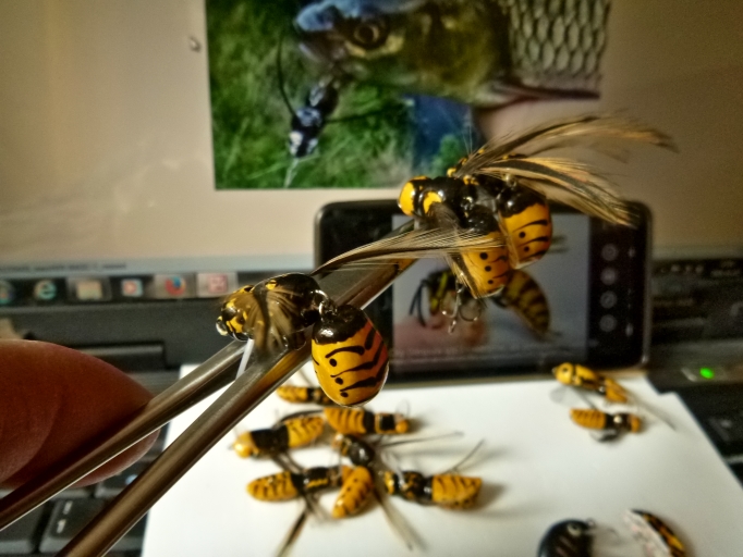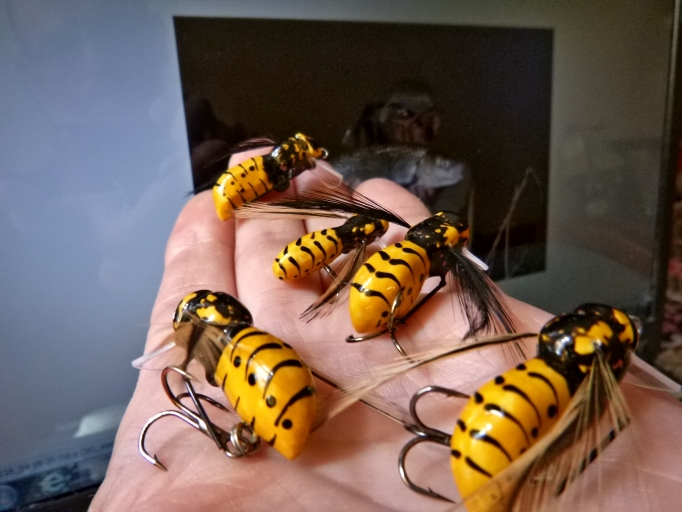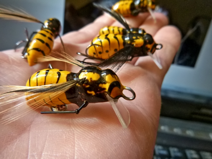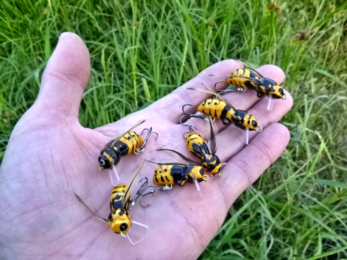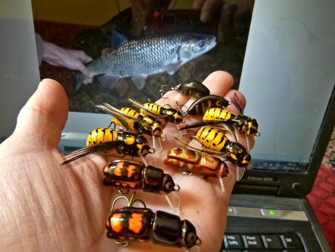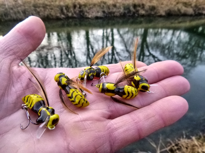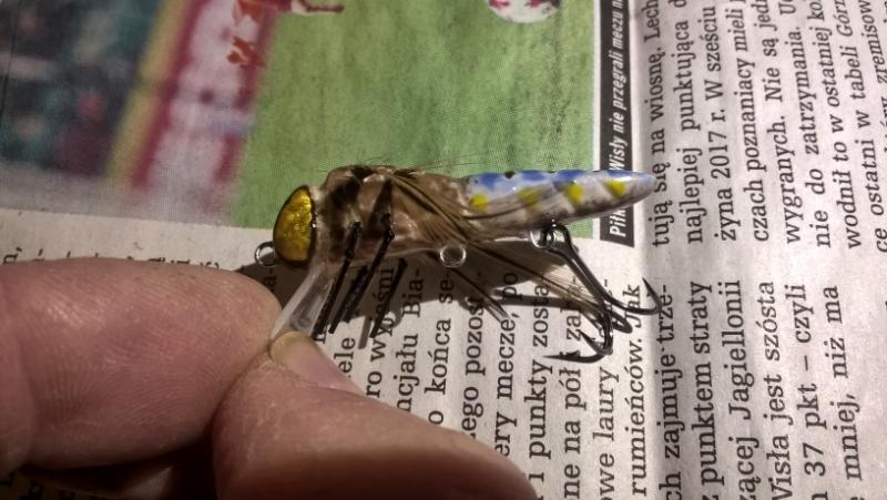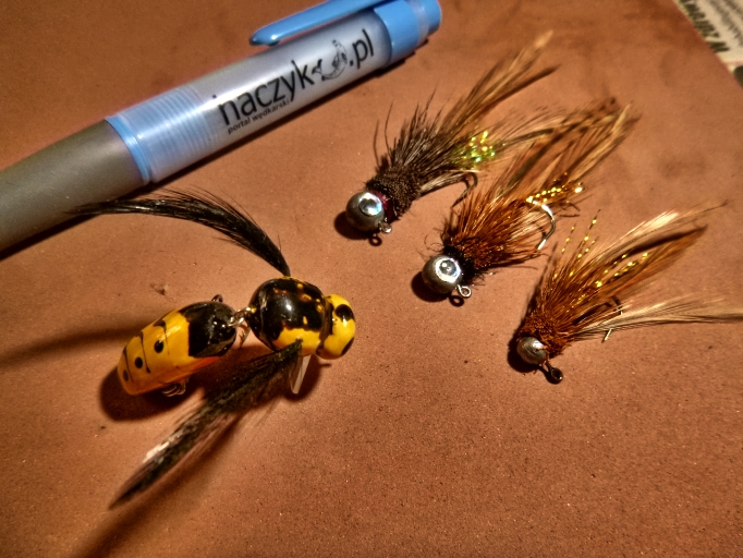 jaceen Opublikowano 25 Maja 2018 Autor Zgłoś Udostępnij Opublikowano 25 Maja 2018 a mozna by u ciebie zamówić takie coś? (wydaje sie prosty wzór -https://www.pro-fishing.eu/topwater-lures-baits/bumble-lure-pretty-jerk-eggJak zdobędę odpowiednie haki, to spróbuję. Przy okazji podrzucę do wypróbowania. Noce zarwane.Kilka z nich dało nieźle popalić. Emocji nazbierało się na kilka lat.Nocne myszki, żabki i owady ze skrzydełkami fajnie zapracowały na wędkarskie wspomnienia. Duuużo wspomnień. Tak dobrze w tym sezonie się nimi łowi, że błyskawicznie dorobiłem kilka sztuk.Tym razem postarałem się nadać jakiś charakterystyczny kształt. Tak, aby było do czego wracać i nie myliły się z innymi wersjami.Przy ustawianiu, to już chyba reguła, czarny szerszeń wzbudził największe zainteresowanie. Sam się dziwię, że tak mało ich robię.Łamana "miętówka", to wersja płytkiego woblera (55 mm). Obciążenia tylko tyle, aby był stabilny. O tych myszkach była mowa wcześniej. Pływające lub neutral.Wielkość 26, 28, 2x32 mm, żabka 30 mm. Oski 1x22 mm, 3x25 mm i szerszenie 2x30 mm. Przynajmniej takich na każdej wyprawie Wam życzę. Do następnego. W następnej odsłonie będzie trochę o nocnych kleniach i jaziach na muchę 21 Cytuj Odnośnik do komentarza Udostępnij na innych stronach Więcej opcji udostępniania...
