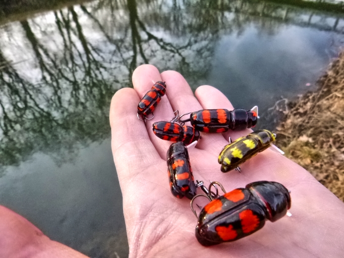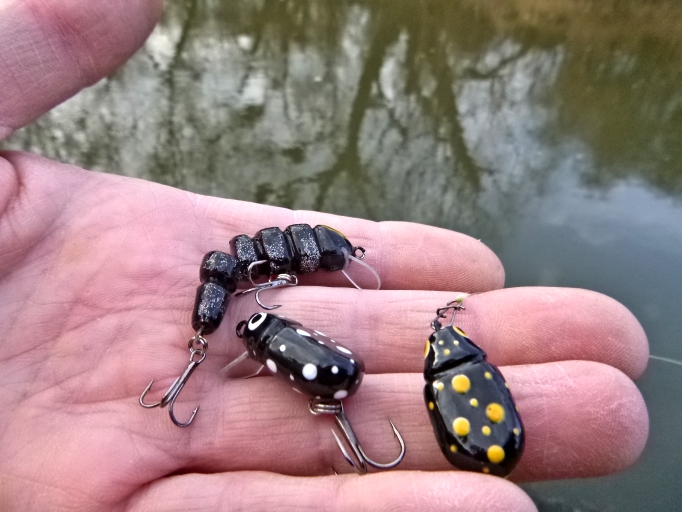 jaceen Opublikowano 20 Lutego 2018 Autor Zgłoś Udostępnij Opublikowano 20 Lutego 2018 Tak, mam w planach w tym sezonie połowić częściej okonie. Łowienie woblerami powierzchniowymi jest bardzo widowiskowe.Dodatkowe emocje, te ułamki sekund widocznego ataku na woblera bardzo się mi spodobały. Wiesz Adamie o czym tu mowa;)Mam nadzieję, że okonie będą szybsze od boleni, których też nie brakuje w miejscu planowanych wypadów. Twoje bezsterowce też tam połowią.Powolutku uczę się je obsługiwać. Cierpliwości:)Problem jest taki, że woda płytka i przynęta nie może być zbyt ciężka. Ten model prawdopodobnie nie ma więcej, jak 5-6 g po uzbrojeniu.Przy wodzie do 70 cm nie może po wpadnięciu do wody dojść dna, bo łapie zaraz siatkę, zielsko, wciska się między kamienie.Jak nie mam woderów, to po przynęcie.Nie ukrywam, że wzorowałem się na woblerze Kreczmara (w tle). Moja wersja, to amatorska manufaktura. PSJakby kiedyś, coś, ten tego u Ciebie, to bacznie zaglądam i obserwuję Cytuj Odnośnik do komentarza Udostępnij na innych stronach Więcej opcji udostępniania...