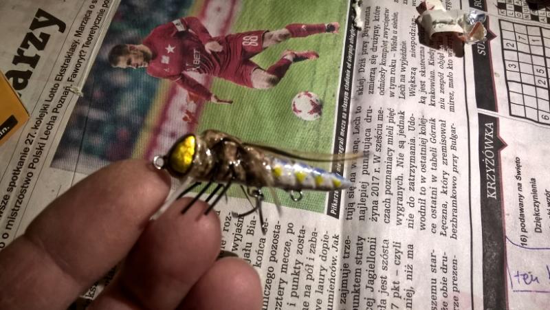 jaceen Opublikowano 8 Marca 2018 Autor Zgłoś Udostępnij Opublikowano 8 Marca 2018 Z tymi kotwiczkami dwuramiennymi nielutowanymi, to jest tak, że wędkarze wykorzystują je w wielu przynętach.Co więcej, wydaje się, że mają najwięcej możliwości kombinowania nimi.Czy to cykady, czy dozbrojki do gum, albo muchy kręcone na takich hakach i jeszcze by się kilka rozwiązań znalazło.Trójramienne i pojedyncze haki im nie dorównują w pomysłowości ich umieszczenia.Osobiście najczęściej z nich korzystam podczas ustawiania.Kilka różnych rozmiarów i bajecznie proste wypinanie, wpinanie i chlup do wody!Gdy wszystko gra, to po ostatnim lakierze zakładam właściwe uzbrojenie. choć w tym akurat wypadku prawdopodobnie niezbyt fortunnyW tym przypadku raczej wskazany. Chyba, że nie dostrzegam w czym rzecz:) W pierwszej wersji jednego oczka - ważka leci na pysk.Znowu przedobrzyłem i dlatego dodałem drugie, aby wypoziomować korpus.Tu nie chodzi o ochy i achy:) (chociaż miłe to), podrzucamy sobie różne rozwiązania i pomysły do zastosowania w swoich przynętach.Komuś przypasuje, może jeszcze ulepszy, albo zaproponuje inne rozwiązanie i jest ok.Wcześniejsze zdjęcia gdzieś uleciały a było parę z takimi rozwiązaniami.Ważka zdecydowanie lepiej wygląda z korpusem łamanym i wpinaną kotwiczką, jak np. przy takiej osie. Takie wpinanie w zasadzie nie zaburza swobody ruchu tylnego korpusu.Jeżeli kotwiczka jest w miarę dobrze wyprofilowana, to nie sprawia problemu. Ja czasami zawiązuję supełek z żyłki na oczku.Przesuwam do przodu i cofając wciskam pod supeł.W ten sposób podczas dynamicznych rzutów mam pewność, że kotwa będzie na miejscu. Koper82, oczka między innymi mają taki cel, jak wspomniałeś.Nic nie przeszkadza założyć kółko i kotwiczkę trójramienną.Bawimy się dalej;) 15 Cytuj Odnośnik do komentarza Udostępnij na innych stronach Więcej opcji udostępniania...