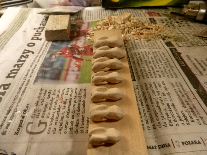 jaceen Opublikowano 24 Kwietnia 2018 Autor Zgłoś Udostępnij Opublikowano 24 Kwietnia 2018 Tak tak, w wodzie też. Tylko czasami zdarza się znaleźć porzucone kłęby poplątanych linek, jakby świadomie.W wodzie nie było mi dane zobaczyć, choć wyobraźnia podpowiada, że obraz może być jeszcze bardziej ponury."68 Historie wędkarskie-za mocna plecionka" daje obraz, co może zdziałać kilkukrotnie owinięta linka. Dokończyłem część woblerków i teraz będzie pewnie dłuższa przerwa. Zresztą z tym, to różnie bywa.Przychodzi moment i lecą wióry w najlepsze.Woblery w rozmiarze 26-30mm. Owady tym razem na pograniczu pływalności. Dzisiaj będę je ustawiał po uzbrojeniu, to się wyjaśni ostatecznie. Na końcu dłoni jest jedna nie przecierana papierem ściernym. Ciapnięta prosto spod noża.Przy sprawnych paluszkach i sprytnym nożyku, w owadzim arsenale, ten zabieg mógłby być zbędny. Dodatkowo żuczki i glapki, aby urozmaicić pudełko. Bywa tak, że jakiś wystrugany cudak da nadzwyczaj wielką radość.Tak było w tym sezonie z taką niby gąsienico-pijawką.Wobler pięknie rozpoczął w lutym sezon kleniowy a w marcu dał mi nowe PB. 25 Cytuj Odnośnik do komentarza Udostępnij na innych stronach Więcej opcji udostępniania...
