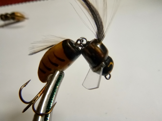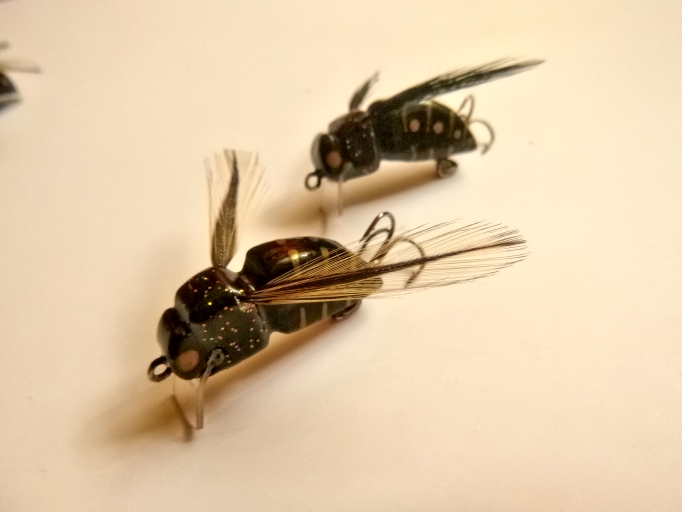 jaceen Opublikowano 21 Marca 2019 Autor Zgłoś Udostępnij Opublikowano 21 Marca 2019 Bomba kaloryczna 41 mm.Klenie i jazie gryzą już w najlepsze, to nie będzie czasu na struganki.Wrzucam, co jeszcze udało się ukończyć.Szerszeń łamaniec. Wersja największa jaką do tej pory zrobiłem.Do tego rozwiązania rozmiar bardzo się przydaje. Nie "łamie" się pod ciężarem kotwiczki i w którym miejscu by nie była,to tułów i odwłok są w jednej linii.Dupka sympatycznie dyga i ogólnie jestem zadowolony.Dla przypomnienia zdjęcia, jakie są możliwości zbrojenia, bo wiele poprzednich zdjęć wyleciało w kosmos. Zapięcie za tylne oczko. Zapięcie za środkowe oczko. Zapięcie za środkowe oczko i jednocześnie w tylne. Pamiętam, że ktoś mi podpowiedział, aby obniżyć łączenie korpusów.Żeby nie było centralne, jak poprzednich wersjach. Wizualnie chyba wygląda lepiej i do takiego zapinania kotwiczki wypada lepiej. Do zdjęć posłużyła kotwiczka o rozmiar za mała. Chwilowy brak właściwych. I jeszcze popperek 40 mm.Paski wydrapane. Malowanie tym razem wyłącznie akrylami i lakierem poliuretanowo-akrylowym. 20 Cytuj Odnośnik do komentarza Udostępnij na innych stronach Więcej opcji udostępniania...