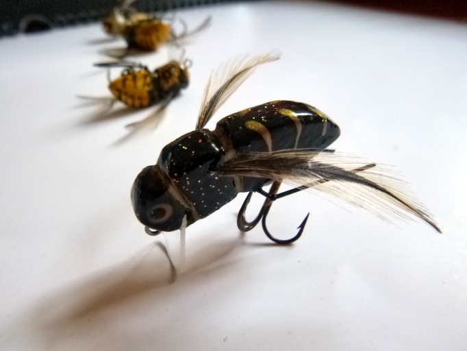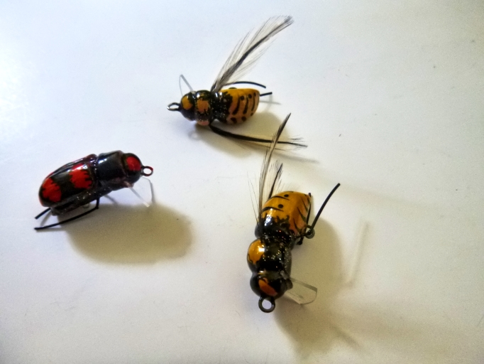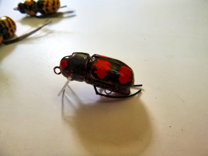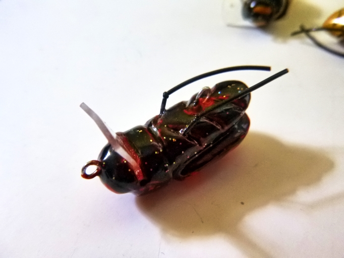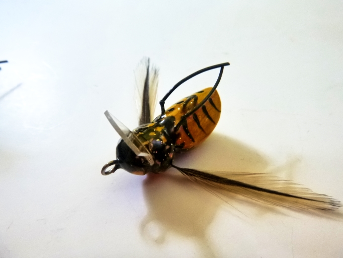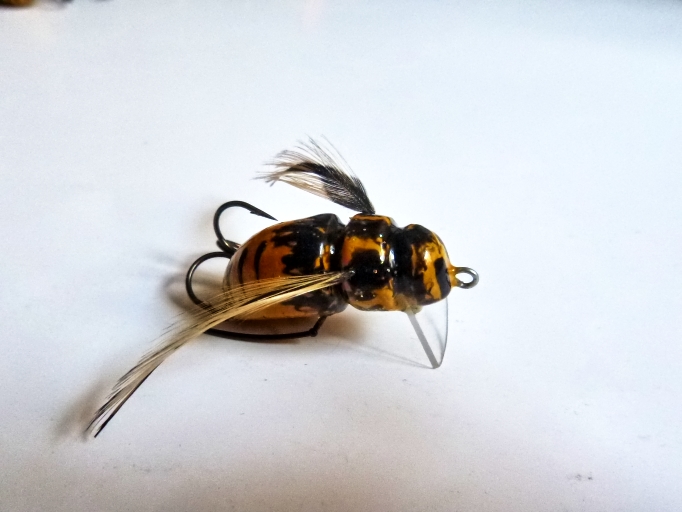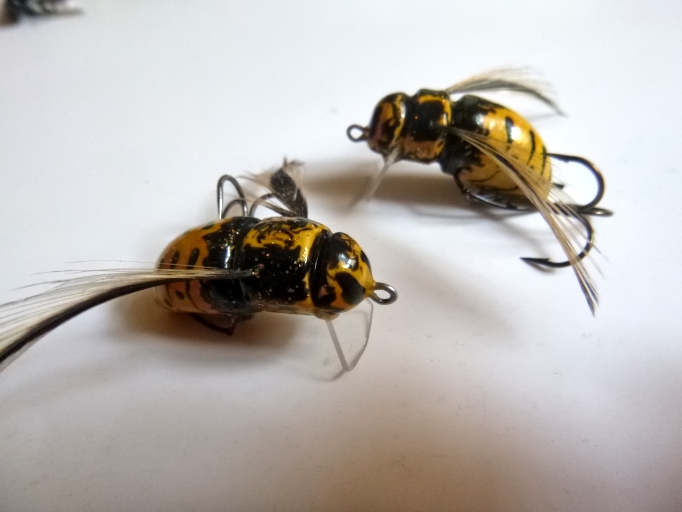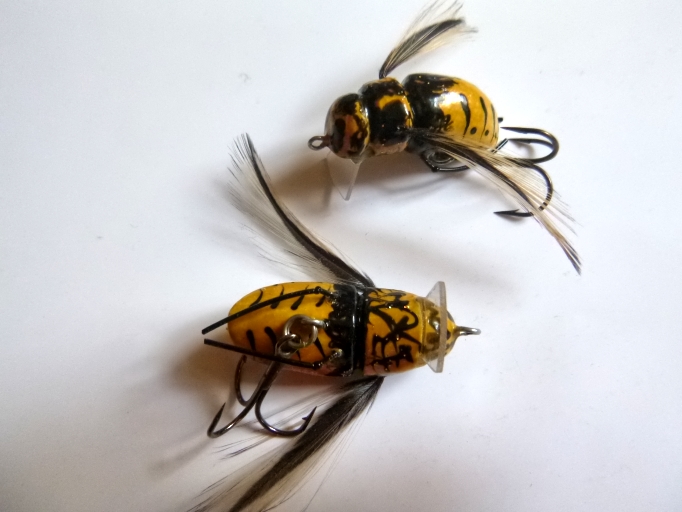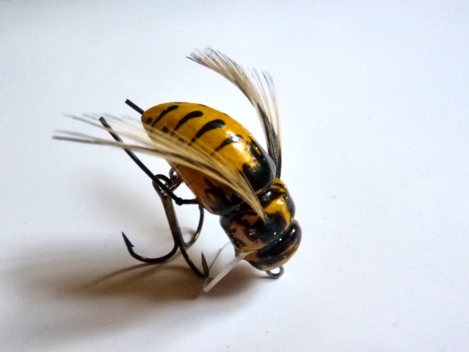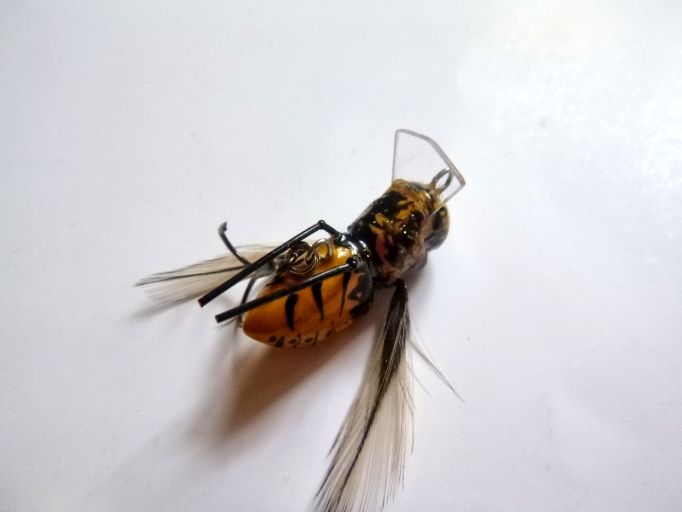 jaceen Opublikowano 16 Listopada 2019 Autor Zgłoś Udostępnij Opublikowano 16 Listopada 2019 Cześć.Przemogłem się do strugania. Ostatnio nawet nie spoglądałem w stronę skrzynki z narzędziami.Pomyślałem, że trzeba by zrobić kilka szerszeni, takich wypasionych. Coś w tym stylu:30/32 mm, wersja smużaki bez dodatkowego balastu. Lipa, trochę drutu, piór, farbki akrylowe i lakier wodorozcieńczalny. Wersja 27 mm, niezatapialny smużak jak poprzednie, również bez zbędnego balastu. Czarnuszek do zadań specjalnych. Wielkość 35 mm. Bez dodatkowego obciążenia.Tego typu woblerek chętnie zjadany jest przez szczupaki. Może taki zdecydowanie powierzchniowy będzie mniej przez nie atakowany. Chciałem poczuć dreszczyk w nadgarstku podczas prowadzenia pięciocentymetrowej "jaskółki".Wyszła taka silikonowa cykada.Ciekawe, czy coś w to przydzwoni;) 13 Cytuj Odnośnik do komentarza Udostępnij na innych stronach Więcej opcji udostępniania...