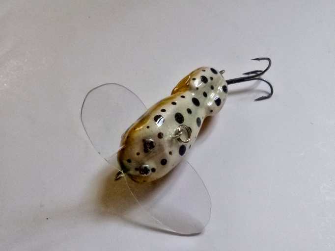 jaceen Opublikowano 5 Lutego 2020 Autor Zgłoś Udostępnij Opublikowano 5 Lutego 2020 Sześć centymetrów "lipnej" żaby. W rzece jeszcze nie testowana, ale w brodziku radziła sobie znakomicie.Stelaż przez całość ⌀1 mm. Malowanie pędzelkiem, wykałaczką, wiertłem, akrylami rozcieńczonymi lakierem.Końcowa warstwa (jedna warstwa) Distal Rapid. Nie udało się dokładnie odpowietrzyć,ale co tam, kilka bąbelków powietrza więcej podczas jego pracy nie zaszkodzi;) Crawler przygotowany został pod dwa haki. Przy tej długości woblera jestem jednak skłonny rezygnować z jednej kotwicy. Dla porównania zdjęcie z poprzednim crawlwrem mierzącym 5 cm wykonanym pod jedną kotwicę. Wszystko jak na dłoni:) pzdr. 10 Cytuj Odnośnik do komentarza Udostępnij na innych stronach Więcej opcji udostępniania...