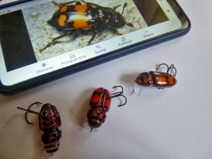 jaceen Opublikowano 5 Marca 2021 Autor Zgłoś Udostępnij Opublikowano 5 Marca 2021 Dzień dobry. A może dobry wieczór? Tak czy siak, witam.Zaraz zaczną się skoki w Oberstdorfie. Będę kibicował i jednocześnie wkleję kilka zdjęć z moimi ostatnimi wypocinami.Woblery smużące bez dodatkowego obciążenia. Balastem są kotwice. Ja tu zanudzam o smużakach a za oknem śnieżna zadyma.Żabka, grabarz, i biegacz mają po 30 mm. Baldurek 28 mm.Wszystkie eksponaty były strugane, docinane, malowane ręcznie.Farby akrylowe mieszane z jakimś lakierem wodorozcieńczalnym i wykończenie cienką warstwą żywicy. Baldurek Grabarz Biegacz zielonozłoty Nie wiem, co jeszcze poprawić przy żabkach? Przeglądając swoje archiwa, doszedłem do wniosku, że taka wersja jest najciekawsza. Będę się starał przy niej pozostać. Niby niewiele się różni od wcześniejszych, ale jednak;) Oczywiście kolorystyka, to co innego. Wzory czerpię od drzewołazów, a tam ograniczeń nie ma;) Na zdjęciu najnowszy model, czyli moja wersja tiger frog. Jeżeli mowa o żabkach, to postanowiłem zebrać część w jednym miejscu.Znaczy się wszystkie, które przywołują na myśl, że mogły koło żabki leżeć i w jakiś sposób je przypominać pzdr 13 Cytuj Odnośnik do komentarza Udostępnij na innych stronach Więcej opcji udostępniania...