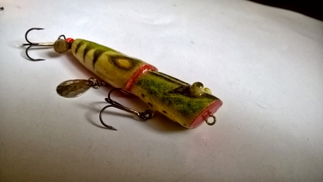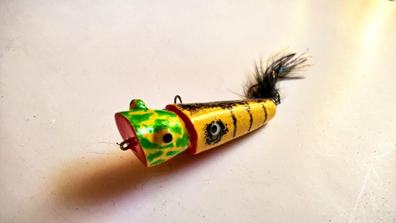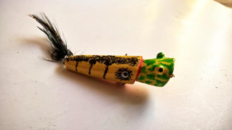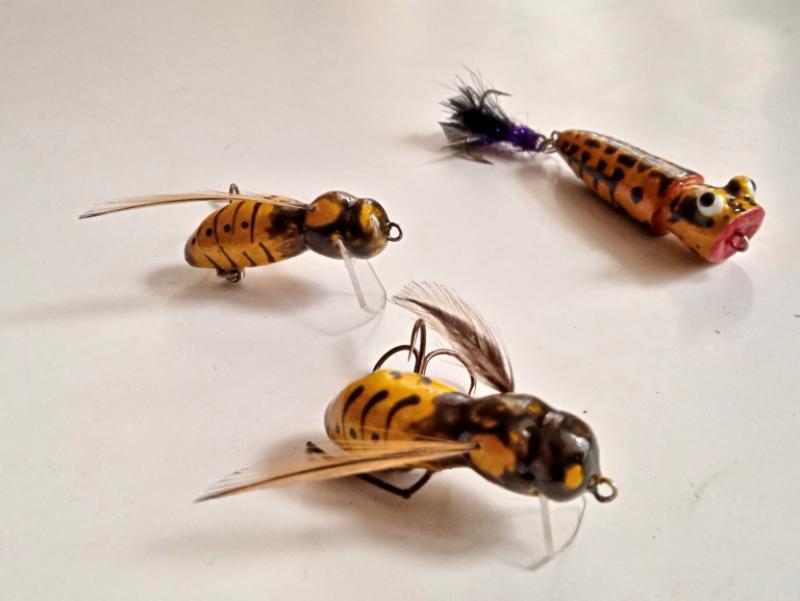 jaceen Opublikowano 18 Lipca 2020 Autor Zgłoś Udostępnij Opublikowano 18 Lipca 2020 Wczoraj sprawdzałem w boju poppera ala "Binksy" na wrocławskim kanale i powiem, że jest dobrze.W czasie 1,5 godz. pięć efektownych ataków i dwa odprowadzenia. Do tego kilka prób podszarpywania przez okonki.Dwa razy po ataku wobler wylatywał w powietrze. Nie jest łatwy w prowadzeniu, jak oryginał, ale najważniejsze, że ryby się nim interesują.Z pewnością zmiana wędki na mniejszy cw przyniesie więcej przyjemności. Kijem do 80g ciężko było mi wydobyć cały potencjał poppera.Tak wygląda wersja z chwostem. Przy okazji.Doschły jeszcze maleństwa i na pamiątkę wklejam kilka zdjęć.Popperek 30 mm malowany akrylami i paćkany gąbką.Osy 30 mm, podkład akrylowy, kolor szary malowany kredką.Ostatnia warstwa-żywica. pzdr 7 Cytuj Odnośnik do komentarza Udostępnij na innych stronach Więcej opcji udostępniania...