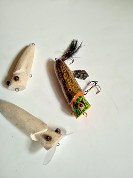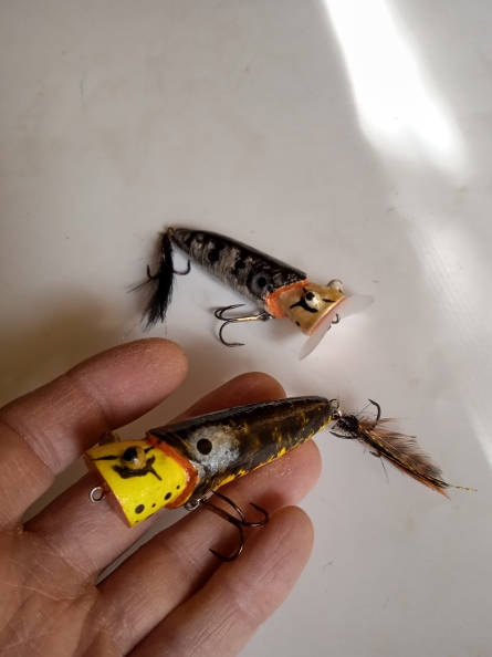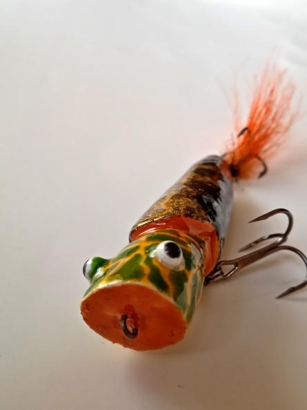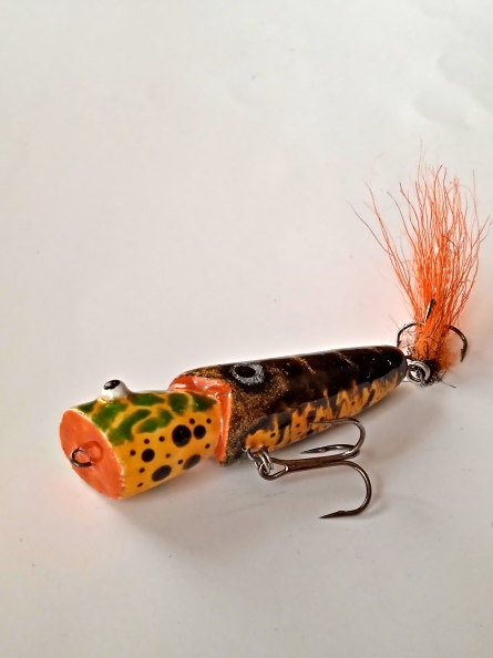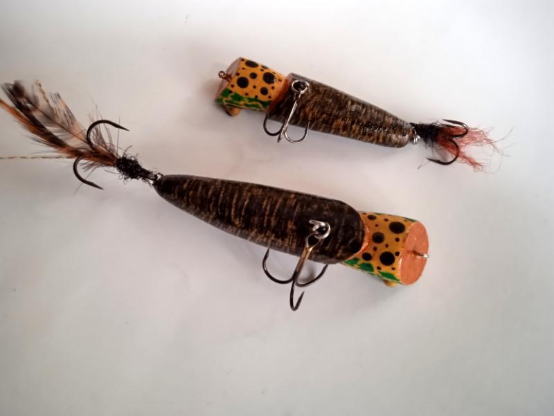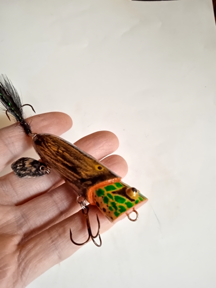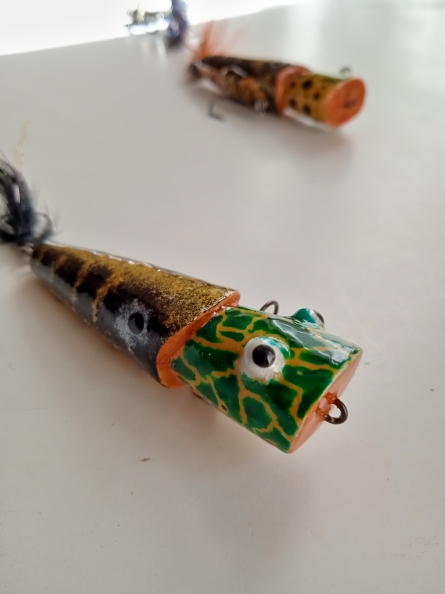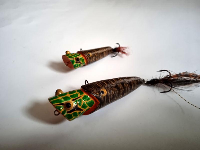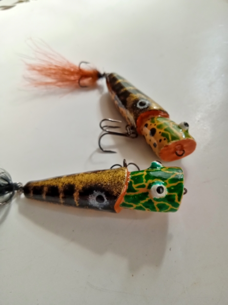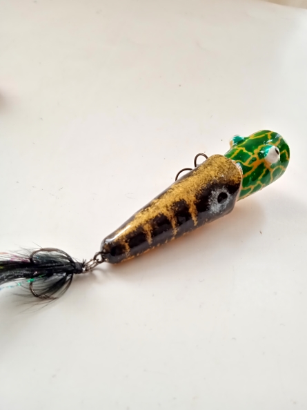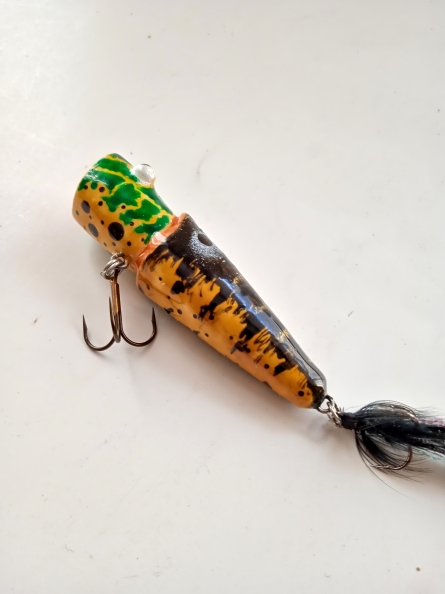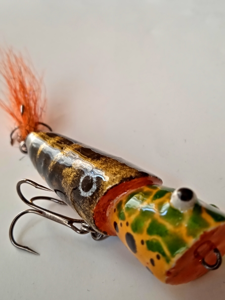 jaceen Opublikowano 21 Lutego 2022 Autor Zgłoś Udostępnij Opublikowano 21 Lutego 2022 Ostatnie poppery z serii.Od marca zabieram się za kleniowe podchody i prawdopodobnie struganie odłożę na dni bez pomysłu (czyt. paskudna pogoda;) 70 mm, waga 10-12 g? Oczko tylne jeszcze niewklejone. Jest opcja dodania śmigiełka. Gdy praca bez niego mnie zadowoli, to odstąpię od "wentylatorka".Mimo że inspiracją był popper Jackall Binksy, to tak do żywego nie chcę kopiować.Trzeba trzymać fason i pozostać przy swoim "jeziorańskim", "januszowym", czy jak tam kto woli, stylu:) Jak dobrze będzie plumkać popper przystosowany do pracy w stylu clawlera, to resztę chyba wykończę w podobny sposób.Motywacją były poprzednie doświadczenia. Tu konkretnie najbardziej przekonał mnie pracą i efektami Swing Pop Strike Pro. Pomysł chodził mi po głowie od kilku lat. Może w obawie, że to nie będzie działać na rodzime ryby, odwlekałem.Jak bardzo się myliłem:) pzdr., ???? 9 Cytuj Odnośnik do komentarza Udostępnij na innych stronach Więcej opcji udostępniania...