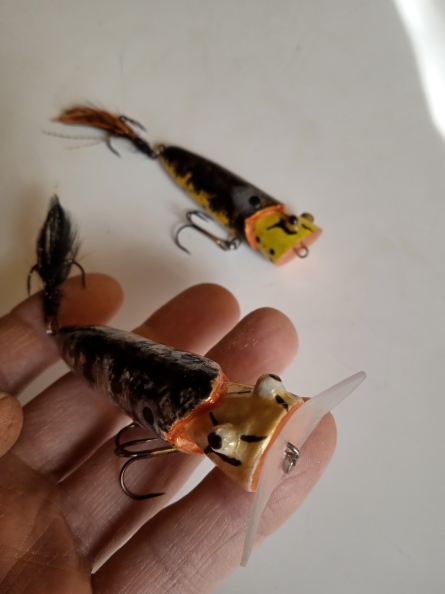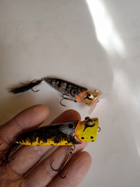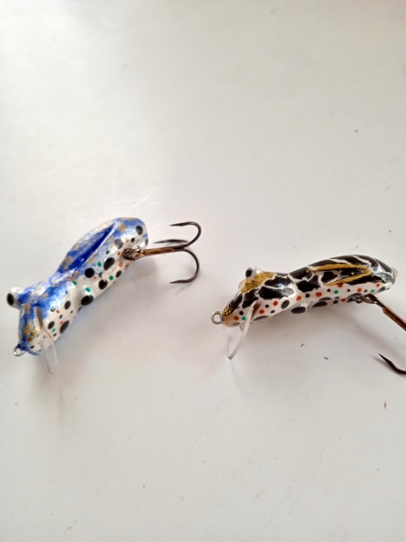 jaceen Opublikowano 15 Marca 2022 Autor Zgłoś Udostępnij Opublikowano 15 Marca 2022 Krótki test w wanie i wygląda, że może być dobrze. Krawler klipie ładnie ze słyszalnym polop plop plop:)Dorobię jeszcze kilka skrzydełek o różnych rozmiarach. Będzie możliwość wymiany i dopasowania do innych, które będą jeszcze powstawać.Miałem strugać korpusy przypominające naturalną żabkę, ale jestem zadowolony z tego rozwiązania.Jest bardziej uniwersalne. Popper i krawler w podobnych rozmiarach ( 70 mm ). Korpus z lipy. Ciapki akrylowymi farbami. pzdr., ???? 5 Cytuj Odnośnik do komentarza Udostępnij na innych stronach Więcej opcji udostępniania...