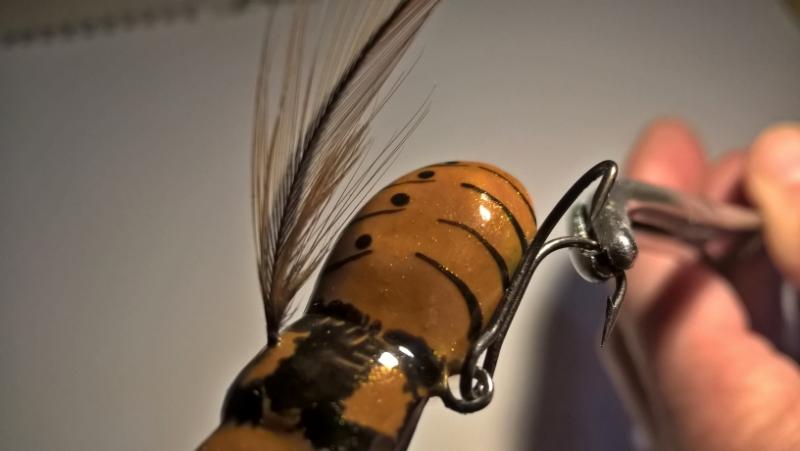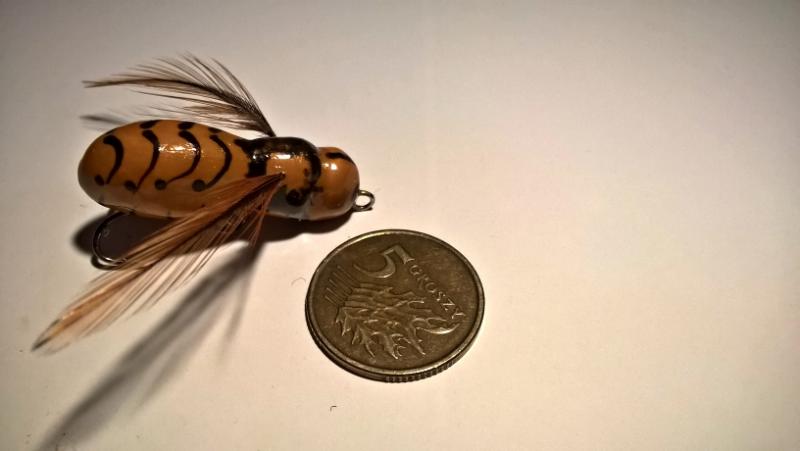 jaceen Opublikowano 27 Grudnia 2016 Autor Zgłoś Udostępnij Opublikowano 27 Grudnia 2016 Czasem trzeba zrobić dłuższą przerwę, bo rzeczywiście palce bolą i do odcisków ciut ciut.Do dobrych zdjęć nie ma sprzętu i trzeba dodatkowo wspierać się jakimś prostym programem.Skończyłem osę z magnesem neodymowym.Długość pływającego korpusu 30mm. Jak widać, jest to wersja do spławiania.W domowych warunkach, podczas prowadzenia oska lekko, ale bardzo delikatnie dyga na boki. To jakby naszła mnie ochota kręcić korbką.Przy sprowadzaniu wachlarzem, taki minimalny ruch może być atrakcyjny. Czyżby kotwiczka trzymana magnesem pomagała w tym?Siła przyciągania widoczna na zdjęciu z brzeszczotem. cdn. 7 Cytuj Odnośnik do komentarza Udostępnij na innych stronach Więcej opcji udostępniania...