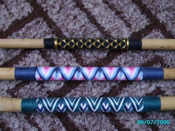 Friko Opublikowano 22 Czerwca 2006 Autor Zgłoś Udostępnij Opublikowano 22 Czerwca 2006 NO i jeszcze, dla osób zainteresowanych kolorystyką omotek, kilka przykładów. Na początek omotki z nici NPC, które nie wymagają zastosowania preparatu utrwalającego kolor: Cytuj Odnośnik do komentarza Udostępnij na innych stronach Więcej opcji udostępniania...