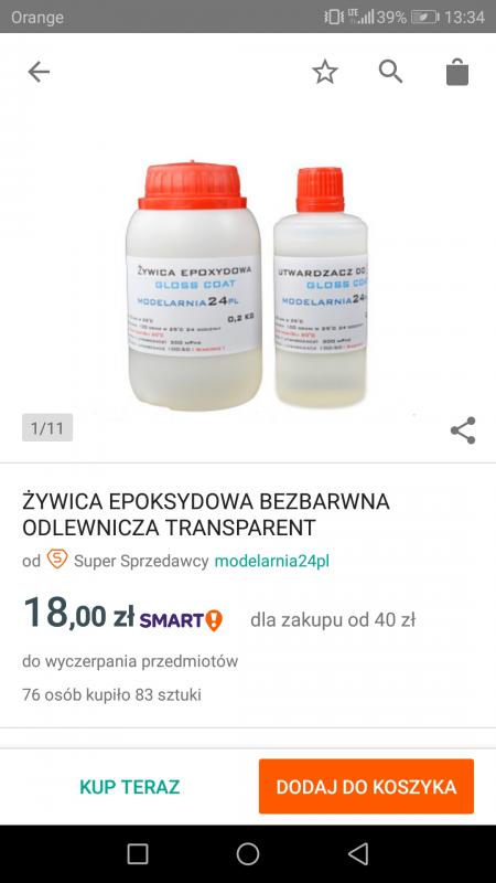 Such a Jerk... Opublikowano 2 Października 2018 Zgłoś Udostępnij Opublikowano 2 Października 2018 Moja stara epoxy, kupiona jeszcze w Hollandi powoli się kończy, więc rozglądam się za alternatywą.I na Alle znalazłem taką opcję.Jedynie ta lepkość, z tego co było wcześniej napisane wydaje się extremalne niska: 200-300 mPas ??Co sądzicie o takiej opcji, wiem że kolega przetestował ta odlewnicza 3D ale jakoś ten mleczny kolor mnie odstrasza. A tutaj wręcz odwrotnie "gloss" zachęca Cytuj Odnośnik do komentarza Udostępnij na innych stronach Więcej opcji udostępniania...