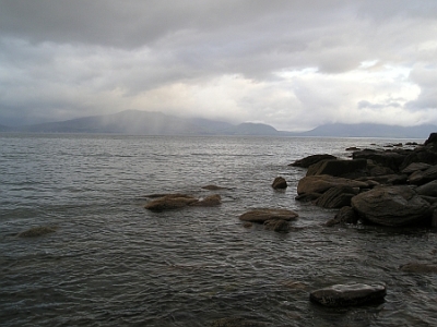 Kamienista zatoka, do której wpada urocza górska rzeczka. Pojechaliśmy na sea trouty i trouty, ale rzeka prawie całkiem wyschła...Postanowiliśmy więc łowić w zatoce.