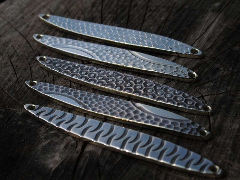 Rheinangler Opublikowano 24 Marca 2013 Zgłoś Udostępnij Opublikowano 24 Marca 2013 No to teraz pora na sandaczowe nocne blaszki,- skoro majowe boleniowe tematy obrobione.Kształt jak w morskich trociówkach, praca zbliżona,- tylko jak najlżejsze i jak najcieńsze, żeby dobrze przemykały w wolnym prowadzeniu nad kamieniami płytkiej wody... Cytuj Odnośnik do komentarza Udostępnij na innych stronach Więcej opcji udostępniania...