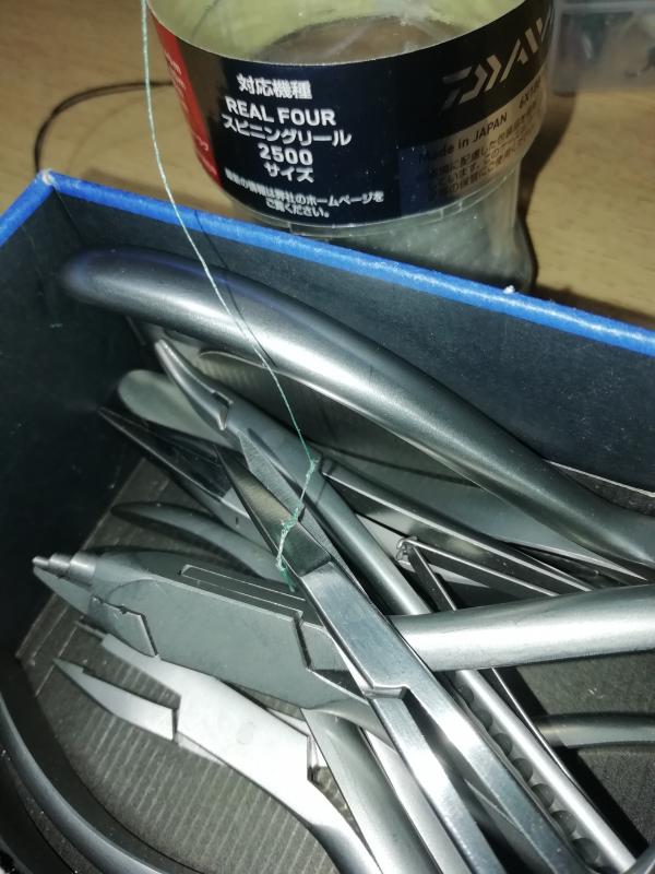 Nożyczki Owner. Drogie to ale tnie jak miecz samuraja. Nie trzeba nic naciągać. Najcieńsze plecionki można po pół mm ciachać. Bardzo ostre i przydatne nożyczki.