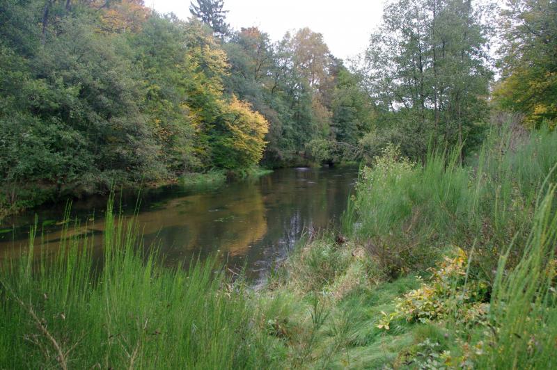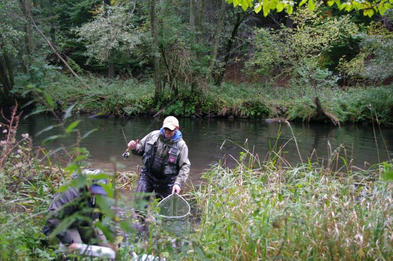Na turę się spóźniłem, bo okazało się że Piotr łowił wysoko w lesie - mokra leśna droga i liczne kałuże uniemożliwiły mi dotarcie osobówką na stanowisko. Musiałem 2-3 km iść pieszo, gdy już się doczłapałem była 15:10 (początek był o 14:00), Piotr miał już 6 lub 7 ryb. Miał fajne stanowisko, choć wyniki z tur poprzednich nie napawały optymizmem (najlepszy wynik 6 ryb). Sporo grubej wody na początku i fajna, trochę płytsza i bardziej odsłonięta końcówka stanowiska.