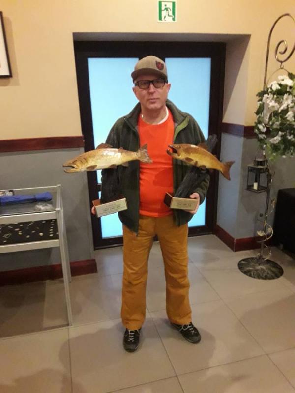 Kacper.K Opublikowano 8 Stycznia 2018 Zgłoś Udostępnij Opublikowano 8 Stycznia 2018 XV TROĆ ŁEBY 2018W dniach 6-7 stycznia 2018 już po raz piętnasty odbyły się jedyne i zaraz najstarsze w Polsce trociowe zawody muchowe, zorganizowane przez Klub Muchowy „Dolina Łeby” oraz Towarzystwo Przyjaciół Rzeki Łeby. Przybyli muszkarze z różnych stron Polski aby spotkać się, porozmawiać i spróbować szczęścia przy połowie troci na muchę.Bazą zawodów już tradycyjnie był Pałac pod Bocianim Gniazdem w Runowie. Po uroczystym otwarciu zawodów przez Burmistrza Miasta Lębork – Witolda Namyślaka zawodnicy udali się nad wodę. Mimo zaciętej walki w niekorzystnych warunkach pogodowych (wysoka woda oraz deszcz) pierwszego dnia zmagań nie udało się złowić ryb. To zdjęcie znakomicie przedstawia ile wody spadło w ostatnim czasie...Kolejny dzień był nieco bardziej łaskawy, mimo bardzo wysokiego stanu wody kolega Adam Ciszek z Dębicy złowił pięknego srebrniaka – 72cm. Receptą na sukces było bardzo dokładne obławianie miejscówek, wytrwałość i głębokie prowadzenie. To już druga wygrana Adama z rzędu, gratulacje! Należy dodać, że kolega Adam zrzekł się nagród na poczet juniora wybranego przez Klub Muchowy „Dolina Łeby”.Zwycięzca zawodów - Adam Ciszek w szczęśliwej czapce i z "kompletem" drewnianych troci.Co roku nagradzamy wybranego uczestnika zawodów. W tym roku wyróżniona została koleżanka Sylwia za hart ducha i wytrwałość w łowieniu na muchę.Do zobaczenia za rok !Serdeczne podziękowania dla sponsorów!SPONSORZY:ZARZĄD OKRĘGU PZW W SŁUPSKUBURMISTRZ MIASTA LĘBORKAPZW KOŁO LĘBORK MIASTO 8 Cytuj Odnośnik do komentarza Udostępnij na innych stronach Więcej opcji udostępniania...