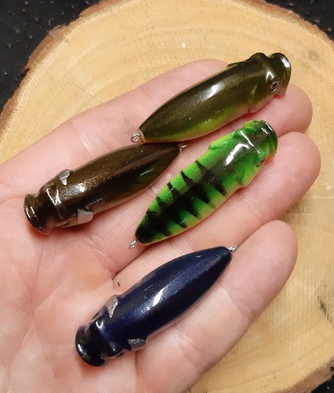Materiał żywica,długość 50mm waga pierwszej to 3,5g z uzbrojeniem,praca drobnutka bardzo intensywna.