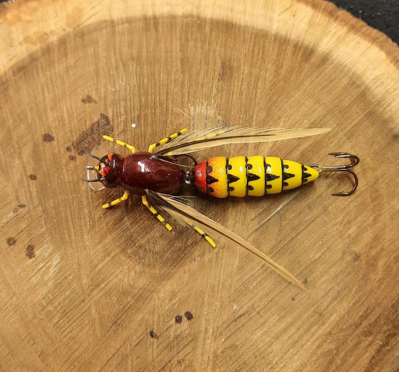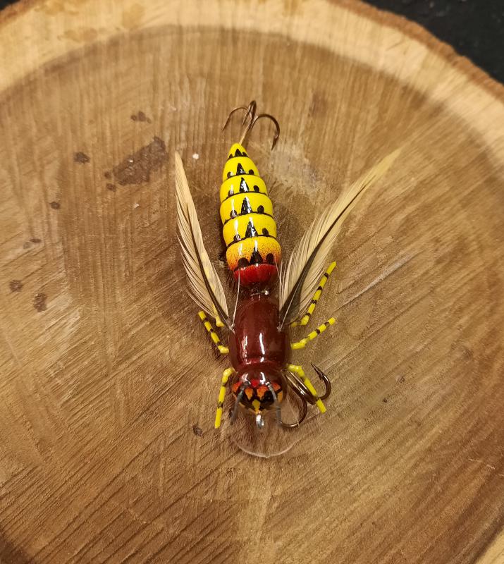 LOLO Opublikowano 5 Kwietnia 2021 Autor Zgłoś Udostępnij Opublikowano 5 Kwietnia 2021 Imitacja pszczoły Materiał balsa,długość 30mm, waga 1,6g pływająca 17 Cytuj Odnośnik do komentarza Udostępnij na innych stronach Więcej opcji udostępniania...