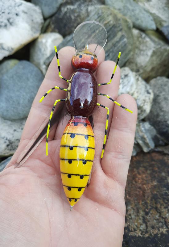LOLO Opublikowano 7 Listopada 2021 Autor Zgłoś Udostępnij Opublikowano 7 Listopada 2021 Coś pod zębacza który nagminne obcina mi szerszenie przeznaczone na klenie.Długość 10cm, waga 20g z uzbrojeniem,stelaż przez całość,zrobiony z drewna,przyneta pływająca o bardzo mocnej akcji,schodzi max do 20cm pod wodę.Malowany farbami kolegi bolen30 i zabespieczony lakierem do parkietu. 9 Cytuj Odnośnik do komentarza Udostępnij na innych stronach Więcej opcji udostępniania...
