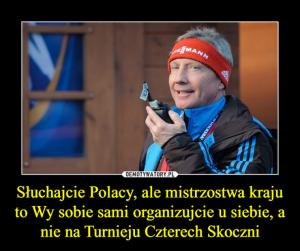 woblery z Bielska Opublikowano 6 Stycznia 2017 Zgłoś Udostępnij Opublikowano 6 Stycznia 2017 Takich sukcesów nie osiąga się "z marszu". Jest to zasługa wielu lat pracy Kruczka, który niestety doszedł do ściany własnych umiejętności. Dobrze, że mamy świetnego następcę, który potrafił w krótkim czasie poprawić mankamenty i przekuł talenty w prawdziwe Orły!Historia dzieje się na naszych oczach. O tym sezonie polskich skoczków będziemy naszym dzieciom i wnukom opowiadać Cytuj Odnośnik do komentarza Udostępnij na innych stronach Więcej opcji udostępniania...