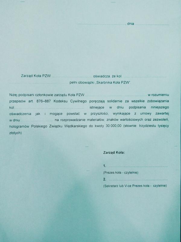 bartsiedlce Opublikowano 13 Grudnia 2016 Zgłoś Udostępnij Opublikowano 13 Grudnia 2016 Zgodnie z Kodeksem Cywilnym dopuszcza się możliwość poręczenia za osoby trzecie, a zgodnie ze statutem PZW za majątek Koła zarząd odpowiada solidarnie. Wobec powyższego uchwała ZO wydaje się być zgodna z prawem, choć niesprawiedliwa dla członków ZK. Działania ZK, w tym skarbnika, kontroluje Komisja Rewizyjna i jeśli ktokolwiek powinien być odpowiedzialny zbiorowo, to jej członkowie.Z tego, co mi wiadomo, w większości okręgów skarbnicy podpisują oświadczenie o odpowiedzialności materialnej za powierzone znaki, jak kasjer w sklepie i to rozwiązuje problem.Możecie nałożyć na skarbnika obowiązek rozliczania się ze znaków na koniec każdego miesiąca w biurze okręgu i przedstawiania kopii raportów finansowych prezesowi. To uchroni Was, jako ZK przed ryzykiem kradzieży ze strony skarbnika, ale dołoży pracy. Możecie też oddelegować do tej roboty Komisję Rewizyjną, nakłaniając ją do comiesięcznej kontroli ilości i wartości znaków i stanu kasy u skarbnika. Taka kontrola zniechęci skarbnika do ewentualnych przekrętów, a jako że jest nowy, to nie powinien mieć nic przeciwko. Trzeba go tylko uprzedzić o takiej kontroli ze strony ZK, czy KRK, przed objęciem funkcji.Możecie też zrobić taki numer, że na dole pisma podpisany będzie wyłącznie skarbnik. 4 Cytuj Odnośnik do komentarza Udostępnij na innych stronach Więcej opcji udostępniania...