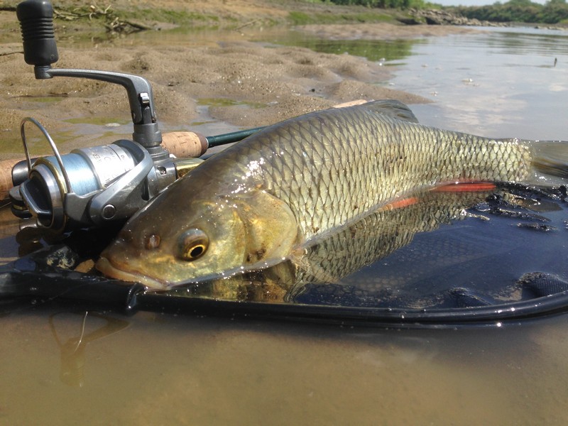 Tomy Opublikowano 31 Lipca 2014 Zgłoś Udostępnij Opublikowano 31 Lipca 2014 I ja dziś wybrałem się na rybki nad odrę po tygodniowej przerwie.Wstać było ciężko ale jakoś się doturlałem nad Odrę około 9.30 Zanim zmontowałem kijek wiedziałem już że jestem w odpowiednim miejscu o odpowiedniej porze. Rzeka żyła jak nigdy , co rusz walnął bolek,Oczywiście nastawiam się na klenia na pierwszy ogień idzie "bandziorek" w drugim rzucie mam już pierwszą rybę klonek tak około 30 cm.Po kilku rzutach zmiana decyzji zakładam "mrówę " od Tomka i to jest strzał w dziesiątkę.Na brzegu dosłownie w co 4 rzucie lądują klenie w przedziale od 30 i dwa 50-taki.W sumie złowiłem około 30 kleni i małą niepodziankę. Rzut mrówą na napływ, pozwalam spłynąć lekko w warkocz i łup strzał i odjazd. po kilku minutowym holu widzę cień ryby. Pierwsza myśl mam życiowego klenia, ale już po podciągnięciu bliżej mym oczom ukazuje się kolega boleń taki stykowy forumowy. Wszystkie rybki złowione na Mrówę Tomka kij Dragon HM , Przepraszam za jakość fot ale szkoda było czasu a i kalkulatorem to nie ma szału.Sebo forma pod mrówy zrobiona.Jutro zalewam. Cytuj Odnośnik do komentarza Udostępnij na innych stronach Więcej opcji udostępniania...