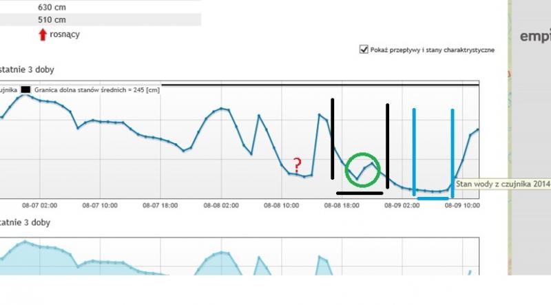 analityk Opublikowano 10 Sierpnia 2014 Autor Zgłoś Udostępnij Opublikowano 10 Sierpnia 2014 Nie lubię potężnych wahań wody które nam ostatnio serwują na rzece – ale cóż zdarzyło mi się nieźle połowić przy wysokiej wodzie i przy niskiej, rosnącej i spadającej – i dokładnie na odwrót zdarzyło mi się polec totalnie przy wysokiej wodzie i przy niskiej, rosnącej i spadającej. Teoria mówi że lepiej gryzą na rosnącej ale w zasadzie to nie ma człowiek wpływu na to co obecnie zastanie nad wodą. Ostatnio dokładnie to przećwiczyłem – wszystko się wyjaśniło kiedy wróciłem do domu i spojrzałem w kompa. (będąc nad wodą i stale zmieniając miejsca bywa że trudno mi określić czy woda spada czy rośnie). Miałem jechać w piątek popołudniu na rybki. W południe patrzę woda bardzo niska. Ucieszyłem się myśląc że jest szansa że będzie rosła kiedy dojadę nad wodę. O dziwo, kiedy dojechałem nad wodę okazało się że stan jest dość wysoki co mnie mocno zaskoczyło (na załączonym wykresie jest gwałtowny skok wody po pierwszej czarnej kresce). Czyli jak dojechałem nad wodę to ta już opadała po gwałtowny przyborze. Nic się nie działo przez 3 h do 20tej. Cisza na wodzie – prawie zero spławów i nic nie mogę skusić do brania. Potem nagle wieczorem w 1,5h z 4 główek łowię 5 boleni – potem znowu cisza na maxa. Parę godzin odpoczynku i walczę od świtu – poranek jak na tą porę roku bardzo cichy – znowu zero aktywności na powierzchni i nic nie mogę zawalczyć. Około 8:30 mam kończyć ale widzę że rybki coś jakby zaczynały się ruszać (choć w zasadzie o tej porze powinien zaczynać się letni null bo skwar) – łowię jeszcze rybkę i idę do domu. Łatwo na załączonym grafie zobaczyć, że kiedy rybki się ruszyły. Woda w krótkim 2h okienku szła do góry (zielone kółko). Potem znowu około 8smej rano (ostatnia niebieska kreska) woda zaczęła się podnosić. Kiedy woda spadała była plaża. Kiedy rybki nie brały myślałem „słaby ze mnie wędkarz” – kiedy brały myślałem „jestem super fachowiec” – a tu tylko „natura” rozgrywała swoje karty. Czy macie podobne obserwacje? 1 Cytuj Odnośnik do komentarza Udostępnij na innych stronach Więcej opcji udostępniania...