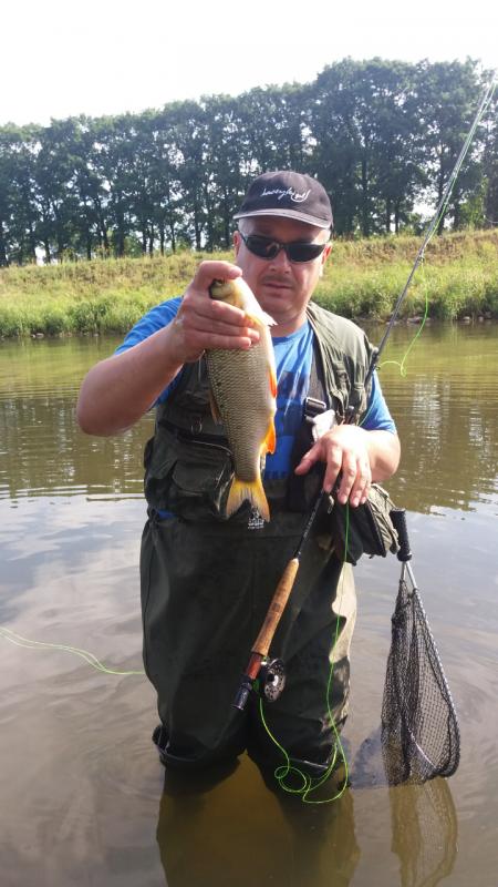 analityk Opublikowano 14 Czerwca 2016 Autor Zgłoś Udostępnij Opublikowano 14 Czerwca 2016 Nie przejmuj się stanem wody. Powiem, że dla nas, początkujących muszkarzy, woda w powodziówce ideał. Można wejść w koryto (nie wszędzie jest twarde dno) i obczaić co nieco. Z brzegu też sporo można dostrzec i komfortowo łowić. Nie trzeba wymyślnych linek, głowic, metod żyłkowych;), a wystarczy kilka prostych przynęt do spławiania lub smużenia i może być ciekawie. Na cztery wyprawy w trzech przypadkach połowiłem. Były fajne jazie, kleń w pobliżu piątki, okonie i jedno branie demolujące zestaw. Trochę ryb spadło. Ogólnie nie ma co się zrażać. Największe zainteresowanie przy moim stylu łowienia wzbudzał smużący niewielki streamer. Najciekawiej było po 22:00:) Ostatnie wyjście totalna klapa/zero. Jak ktoś ma dość krwiopijczych kleszczy, zdzierży bądź co bądź mało komfortowe wodery, spodniobuty, to można wymachiwać liną do woli we wszystkie strony.Ślęza, to inny temat i jak ktoś lubi takie siury i klimaty, to żadne odrzańskie 50+ nie przemówią do wyobraźni:)Ceikawe info. Mało czasu mam na łowienie ( i chęci mniej niż kiedyś) ale jeszcze gdzieś wyskoczę. Kanał przeciwpowodziowy na razie mnie (jako muszkarza) niemal całkowicei ignoruje ale może tak jak piszesz trzeba mikromuszki zamienić na większe przynęty. Po zmroku to jeszcze mucha nie dla mnie - za bardzo się to wszystko potrafi plątać. Dziś na ślęzie za to kilkanaście mikrokleników i 2 uklejki Jeszcze nieco wody tam jest. Cytuj Odnośnik do komentarza Udostępnij na innych stronach Więcej opcji udostępniania...