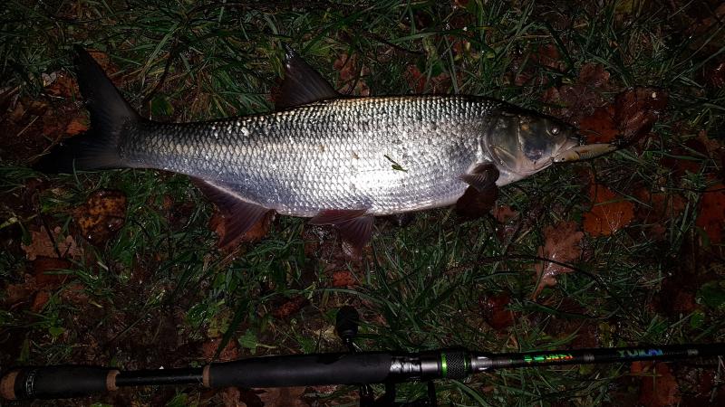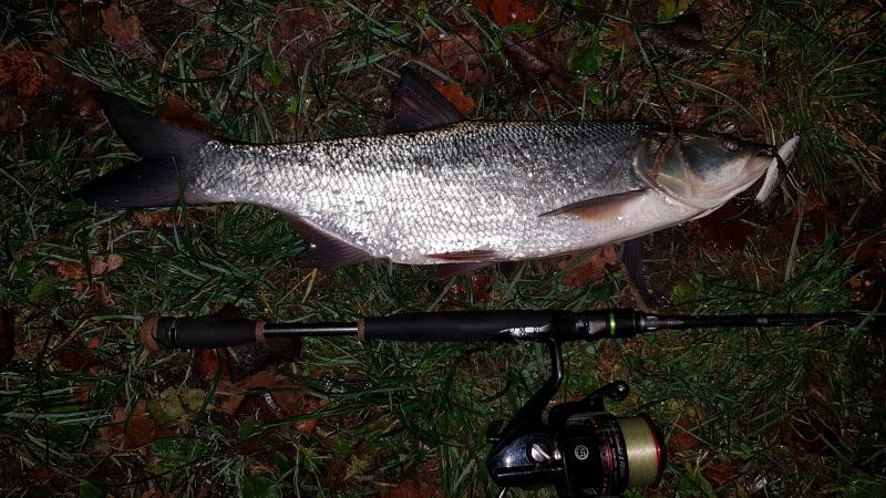 I ciekawostka tych miejsc, te jasne, rzeczne, z piasku łowi się na imitacje rybek, ripperek lub twisterek w kolorze takim jaki im akurat pasuje, dzisiaj perełka z pieprzem i seledyn i denaturacik,  A te z "lasu" łowi się na robale, imitacje larwy ważki lub widelnicy, na różne imitacje pijawki i pająków. Dzisiejszy, największy, dobre 4 dychy, na larwę od Cyprysa pierdyknął. Taka to zabawa default_wink.png