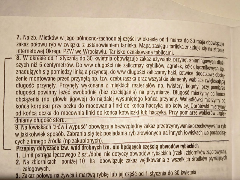 jaceen Opublikowano 19 Grudnia 2022 Zgłoś Udostępnij Opublikowano 19 Grudnia 2022 Mnie się ten przepis nie podoba. Gdyby miało to zostać na dłużej, to potargowałbym się przynajmniej o te 0,5 cm:)Przepis został zerżnięty z Okręgu Mazowieckiego. Chyba kropka w kropkę. Ktoś zawnioskował, ktoś to przepchnął i mamy to co mamy.Interpretacja warszawska jest niedbała. Nie odnosi się do metod spinningowych jak TokioRig, TexasRig, CarolinaRig, boczny trok, czy DropShot.Jaki argument przemawiał, że wymiar 5 cm, a nie 4,5 lub 5,5 cm? Ktoś puścił bąka w tramwaju i wysiadł na najbliższym przystanku, zostawiając ze smrodem pozostałych pasażerów. Nie wyjaśnił, dlaczego bąka puścił, co miał tym osiągnąć. Ogólnie jakie osiągnie tym korzyści. I nie ma zamiaru ujawnić się, że to uczynił. Odwagi! Żeby była jasność. Nie jestem zwolennikiem używania dużych przynęt spinningowych w tym okresie.Gdyby miał ktoś ochotę, to proszę dać sobie na wstrzymanie i nie wrzucać mnie do wora wędkarzy z nieuczciwymi zamiarami.Oczekuję jednak rzetelności i jasności sprawy. Tu jest wersja warszawska.https://ompzw.pl/news/dlugosc-przynety-powyzej-5-cm-interpretacja-przepisu Wersja wrocławska. Cytuj Odnośnik do komentarza Udostępnij na innych stronach Więcej opcji udostępniania...