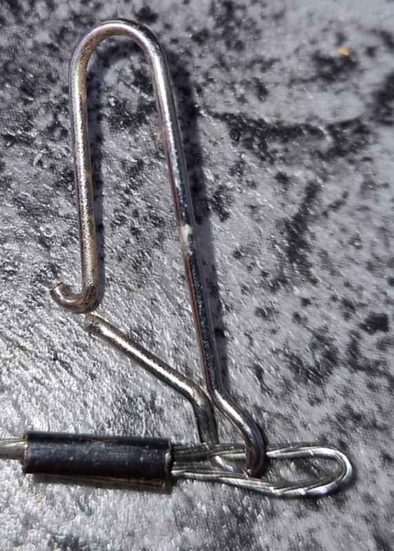 Przypon mial pewnie z kilka miesiecy i kilka ryb za soba + wyrzutow przynet do 200g. Przy rzucie oboma ciezarkami i agrafke i tulejke od strony trafil diabel morski. Rzucic rzucily, ale juz ryby bym nie wyjal...