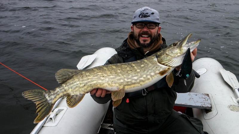 Melanzyk Opublikowano 7 Kwietnia 2017 Zgłoś Udostępnij Opublikowano 7 Kwietnia 2017 (edytowane) Cześć Przez ostatnie tygodnie sporo się u mnie działo. Zarywane nocki w warsztacie, praca, dojazdy, koordynacja akcji charytatywnej, filmowanie, edytowanie no i w końcu trochę łowienia. W zeszłym tygodniu razem z Kubą oraz Paulem spędziliśmy 4 dni nad wodą. Cel - zrobienie odjechanego filmu, ktory będzie dostepny już niedługo. Oczywiście jak to zwykle bywa w Irlandii gdy sobie coś ważnego zaplanujemy pogoda płata nam figla. Podczas tych 4 dni wiatr postanowil, że 30km/h to jest odpowiednia prędkość z jeszcze wiekszymi porywami dochodzącymi nawet do 60km. Nie dość, że cholernie wiało, to jeszcze wiało w takim kierunku, że wykluczało nas to z łowienia na 2 łowiskach. Oczywiście gdyby nie fakt, że musieliśmy żadna siła by mnie z domu nie wyciągnęła. Przez te 4 dni zwiedziliśmy 3 wody i z racji tego co sie działo niewiele czasu poświęciliśmy na łowienie. 4 dni po odstawieniu Paula na lotnisko udałem się po raz kolejny nad wodę. Tym razem miałem kolejnego gościa z Anglii. Osoby łowiące w UK lub śledzące temat powinny go znać. Był to Nathan Edgel. Znany angielski szczupakowiec, który przyjechal do Ire na ponad tydzień. Wieczorami miał prezentacje dotyczące łowienia szczupaków w rzekach a w dzień łowił z różnymi irlandzkimi przewodnikami. Nathan podobnie jak ja pracuje na nocki. Poznaliśmy się przez Facebooka pewnie ze 2-3 lata temu nudząc się w pracy. Gdy mi napisał, że będzie w Irlandii i ma dzien wolny od razu padła propozycja wspólnego wędkowania. Nad wodą spotkalismy się dość późno ponieważ Nathan miał do pokonania ponad 200km. Dodatkowo samochód zaczął płatać mu figle co spowodowało jeszcze większe opóźnienie. Będąc już gotowy i wiedząc, że mam jeszcze 20 min postanowiłem wyruszyć na szybki zwiad w trollingu. Wyrzuciłem pierwsza wędkę z Piranią po czym na 2 kijek założyłem 40cm Trouta. Pomyślałem, że nie chce mi się go wypuszczać z ręki więc go wyrzuce. Robilem to juz wielokrotnie, ale tym razem chyba pośpiech zrobił swoje. 6 dni wcześniej, podczas gdy z Paulem robiliśmy live'a na YouTubie na pytanie jednego oglądającego Duńczyka odpowiedziałem, że ponton jest w 100% kotwico odporny. Po 7 latach użytkowania niestety poddał się pod ciężarem 700g przynęty. Szybko zwinąłem wędki i udałem się w stronę slipa gdzie przeprowadziłem nie koniecznie udaną reanimację duct tapem. Wtedy nadjechał Nathan. Ciekawie co sobie pomyślał widząc mnie na brzegu zaklejającego taśmą nasz środek pływający Poznaliśmy się na żywo, chwile pogadaliśmy pakując jego graty, zabraliśmy z auta pompkę elektryczną i w drogę. Plan był następujący, uderzamy najpierw sprawdzić jedną bardzo płytką i zarośnietą zatoczkę, w której nie dalej jak 3-4 dni wcześniej odbywało się tarło leszczy. W weekend znajomy podczas łowienia wyciągnał 4 leszcze długosci 52-57cm za "kapotę". Ponoć woda aż się gotowała. Powiedziałem Nathanowi, ze jak będą tam jeszcze leszcze to mamy połowione. Niestety nie było po nich śladu. Zatoczka wyglądała jednak całkiem inaczej gdy łowiliśmy tam z Kubą i Paulem kilka dni wcześniej. Wtedy wdzierała sie tam wielka fala, która powodowała zbełtanie się wody do takiego stopnia, ze ledwo było widać nasze przynty. Wiatr zmienił kierunek o 180 st i było całkiem inaczej. Spokojna, krystalicznie czysta woda i echosonda pokazująca w najgłębszym miejscu 0,7m z czego dolne 20-30cm to zielsko Również w te 4 dni woda spadła o jakieś 30cm. Na pierwszą rybę dnia musieliśmy poczekać myślę, że między 1,5 a 2h. Nathan zaciął naprawdę pięknie ubarwionego szczupaka co jest rzadkością w Ire. Była to tym samym największa ryba całego wypadu oraz największa ryba jaką kiedykolwiek złowił w Irlandii. Uff, ciśnienie spadło i można było sie zrelaksować Jakiś czas później na kiju Nathana melduje się kolejna ryba. Odrobinę mniejsza, ale podobnie jak poprzedniczka z brzuszkiem wypchanym leszczami. Normalnie można było je "wymacać" i policzyć. Zadziwiające jak szybko w dobrej wodzie ryby mogą się zregenerować po tarle. Ja próbowałem szczęścia z moją ulubioną przynętą czyli Piranią. Wersja shallow dawała sobie nawet radę na tak płytkiej wodzie, niestety nie można było robić zbyt długich przerw w podbijaniu bo kończyło się to zielskiem na kotwicach. Nie była to zdecydowanie woda jerkowa ale ja i tak uparcie próbowałem co zaowocowało pięknym braniem. Zaciąłem rybę, która przez pierwsze 2 minuty holu zmuszała mnie do kilkakrotnego podkręcania hamulca, później zaparkowała w zaschniętych zeszłorocznych trzcinach i straciłem z nią kontakt na ponad minutę :/ gdy w końcu ją wydarłem z zaczepu znów zaczęły się szalone odajzdy. Nathan zapytał czy ma mi ją podbierać, powiedziałem, że sam sobie dam radę i żeby złapał za kamerę i zaczął nagrywać. I tu był błąd... Niestety ryba spięła się będąc w połowie w podbieraku a w powietrze powędrowało kilka faków. Ehh, a mogło być tak pięknie. Kilkakrotnie tego dnia za dość szybko prowadzoną Piranią pojawiały się wiry. Jeden wir/atak był tak duży, że w stronę pontonu poszła fala, która nami zabujała. Zmieniając co jakiś czas rodzaje przynęt, na gumy, muchy spinningowe nie potrafiłem skutecznie zaciąć żadnej ryby. Nathan w tym czasie doławia swoją trzecią Na koniec udaje mi się złowić rybę pocieszenia. Później zaliczam 3 spudlowane ataki dużej ryby w 3 rzutach na Piranię dosłownie 3m od pontonu. Heh. Wynik końcowy był lepszy niż mogłem sobie wymarzyć. Miałem cichą nadzieję, że uda się Nathanowi złowić ze mną nalepszą rybę całego wypadu do Irlandii ale nie przypuszczałem, że będzie to aż 3 największe irlandzkie szczupaki! Przez ostatni tydzień łowi