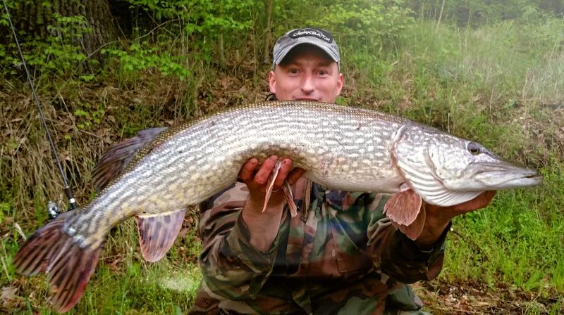 Robgsxr Opublikowano 11 Maja 2017 Zgłoś Udostępnij Opublikowano 11 Maja 2017 Za namową Roberta opiszę swój "dzień konia" W ubiegłą niedziele o godzinie 7 rano stawiłem się nad swoją wodą, pogoda była idealna na szczupaki-pochmurno, umiarkowanie ciepło i przelotne opady. Obławianie bankówek przez pierwsze 2 godziny nie przyniosło żadnego rezultatu, mimo że w wodzie lądowały różne jerki, gumy, swimbaity i inne mniej lub bardziej skuteczne przynęty znajdujące się w moim pudle.Postanowiłem udać się do niepozornej, płytkiej zatoczki. Głębokość łowiska nie przekracza metra, więc nawet jeśli szczupaki nie grzeszą rozmiarem łowienie ich jest super frajdą.Na agrafkę zapiąłem swimbaita 4Play ze stajni Savage. W pierwszym rzucie na ściąganego jednostajnym tempem pod powierzchnią 4Playa mam delikatne branie, jednak ryba się nie wcieła. Pomyślałem, że to niewielka ryba. Kilkanaście, a może kilkadziesiąt rzutów później mam lekkie splątanie na multiku, oczywiście nie ignoruję go, ponieważ lekka broda, może przechylić szale zwycięstwa na stronę ryby. Gdy odplątałem plecionkę, podnoszę kij (4play znajdował się w wodzie) i czuję ciężar ryby. Początkowo myślałem, że jest to niewielka ryba, ot taki 60-65cm pajk, jednak gdy pierwszy raz go zobaczyłem, zmieniłem zdanie. Po krótkim holu ryba wylądowała w przepastnym podbieraku. Szczupak był pewnie zapięty, mimo że zebrał przynętę z dna Kilka fotek wykonanych przez przypadkowego wędkarza i zamierzam rybę wypuścić do wody, jednak zgodnie z namową wędkarza postanowiliśmy rybę zmierzyć. Miarka zatrzymała się na 100cm, co oznacza nowy PB!Po wypuszczeniu ryby zastanawiam się co dalej zrobić ze swoją "szczupaczą karierą", w końcu metr osiągnięty Kilka godzin później docieram na miejsce, które nie daje dużo ryb, ale jak już jakaś wyjedzie, jest to niezła ryba. Jest to spad z 1m na 4m, na dnie znajduję się moczarka i inna rośliność - miejsce idealne. Wybieram z pudełka przynętę, wybór padł na Shad Teeza 22cm na 6 gramowej główce. Pierwszy rzut wykonuję na płytką wodę, pozwalając przynęcie zejść z płytkiego miejsca na głębsze. W momencie, gdy przynęta znajdowała się na spadzie zanotowałem potężne uderzenie, mocne zacięcie i czuję rybę na kiju. Ryba od razu po zacięciu robi na powierzchni kilka młynków, lecz kijem skierowanym do dołu uniemożliwiam jej dalsze próby uwolnienia się. Pod brzegiem widzę pierwszy raz mojego przeciwnika, prawdziwa solidnie odpasiona mamuśka. Ryba robi jeden krótki odjazd i ląduje w podbieraku. Rybę pozostawiam w podbieraku pozwalając jej odpocząć, a w tym samym czasie rozkładam matę. Po szybkiej sesji fotograficznej czas na pomiary. Ryba mierzy 112 cm i waży 11,3kg.Na koniec dodam, że podczas tego dnia szczupak żerowały wyjątkowo intensywnie, ponieważ wtedy płoć miała tarło i te największe ryby podążały za ławicami na płytkie wody.Nigdy nie zapomnę tego dnia! *Zdjęcia nie są dziełem sztuki, ze względu na zamalowane tło, nie chce najazdu "hunów" na swoje miejscówki Sprzętowo: Ultima do 80g, Abu C3 5501, plecionka Varivas Casting Pe 3.0, przypon z FC Daiwy 100lb. Fajnie mi się łowi tym zestawem, ręka nie boli po kilku godzinach łowienia, nie ma odstrzałów.A ryby wyjeżdżają jak złe na tym zestawie NOMINACJA DO KONKURSU "OPIS MIESIĄCA" A to ty jesteś ten Filip Już od dawna Cie obserwuję , Twoje pierwsze filmiki itd. Komu jak komu ale Tobie takie Maciory się należały jak psu buda . Piekne ryby gratuluje historia majowa na całe życie . Całość od wyboru przynęt , sprzętu do traktowania ryby po złowieniu pełne PRO .BRAWO 5 Cytuj Odnośnik do komentarza Udostępnij na innych stronach Więcej opcji udostępniania...