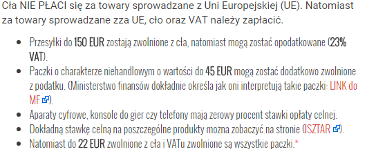Majo Opublikowano 29 Lipca 2015 Zgłoś Udostępnij Opublikowano 29 Lipca 2015 Informacja od sklepu ALIEXPRESS.COMJa zapłaciłem 196zł więc z cła jestem zwolniony A ten VAT to może dojść a nie musi? jest jakaś zasada? Nie wszystkie paczki są sprawdzane. Jedni dostają, inni nie. Ale raczej nie dostaniesz nic. Jedynie nie polecam kupować podróbek np.perfum,markowych ciuchów bo to nie przejdzie. Pierdółki można kupować Cytuj Odnośnik do komentarza Udostępnij na innych stronach Więcej opcji udostępniania...