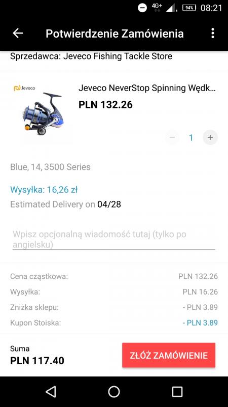 Dzisiaj przyszedł do mnie drugi Jeveco 3000. Dostawa 11 dni, za cenę zapasowej szpuli do Daiwy BG żal było nie brać, poza tym po prostu lubię ten kołowrotek i akceptuję jego drobne mankamenty. Pierwszy jest na trotki, a drugi będzie pod szczupaczka B)