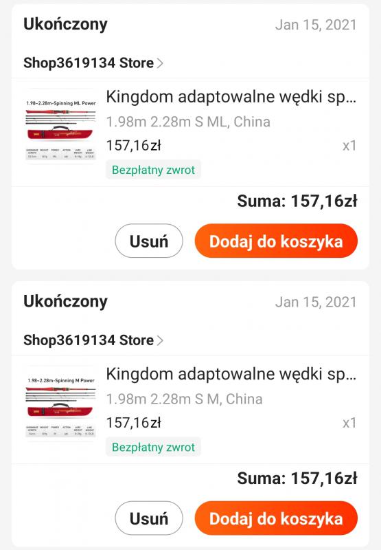 lesnypatataj Opublikowano 23 Maja 2023 Zgłoś Udostępnij Opublikowano 23 Maja 2023 15-20, g czy cm?Przepraszam chodziło mi bardziej o woblery cos do 20g i w okolicach 10cm Są nadal na Alix... pierwsze zdjęcie w ofercie nie jest Westina, ale jak sie wejdzie w wybór kolorów to już ewidentnie te same (tylko przód zakryty z wiadomych przyczyn).https://pl.aliexpress.com/item/1005004432282403.html?srcSns=sns_Copy&spreadType=socialShare&bizType=ProductDetail&social_params=60276765491&aff_fcid=d7596766debe42b3a6d4b5ce7220cf35-1677569550941-09542-_EHby7AV&tt=MG&aff_fsk=_EHby7AV&shareId=60276765491&businessType=ProductDetail&platform=AE&afSmartRedirect=y&aff_fcid=bca7ac17e4ce4db385ed85df7ee48349-1678623707715-07273-_ePNSNV&aff_fsk=_ePNSNV&afSmartRedirect=y&dp=017d51e8869fc5d7cbabfb3227a15296&af=1118706&cv=47843&afref=https%3A%2F%2Fl.facebook.com%2F&mall_affr=pr3&utm_source=admitad&utm_medium=cpa&utm_campaign=1118706&utm_content=47843&dp=017d51e8869fc5d7cbabfb3227a15296&af=1118706&cv=47843&afref=https%3A%2F%2Fl.facebook.com%2F&mall_affr=pr3&utm_source=admitad&utm_medium=cpa&utm_campaign=1118706&utm_content=47843&aff_fcid=6eed8cc80cd646e0960764a523958d60-1684482408507-02847-_ePNSNV&aff_fsk=_ePNSNV&aff_platform=portals-tool&sk=_ePNSNV&aff_trace_key=6eed8cc80cd646e0960764a523958d60-1684482408507-02847-_ePNSNV&terminal_id=c207b5681af04061b5f544fe415ae8a8&afSmartRedirect=y Faktycznie masz racjewidac to po zdjeciach kupujacych Dziękuję, już zamówione 2 Cytuj Odnośnik do komentarza Udostępnij na innych stronach Więcej opcji udostępniania...