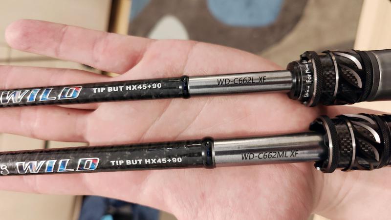 Wesja ML, to już rasowa sandaczowa szpada. Średnica blanku na dole jest dużo wyższa od delikatniejszego brata. Ogromna moc w dolniku, ja bym ją przyrównał do wędek opisanych w Polsce jako Mki. Na oko pociągnie 35-40g, ale tu muszę zastrzec, że to tylko wrażenie z domowej macanki.